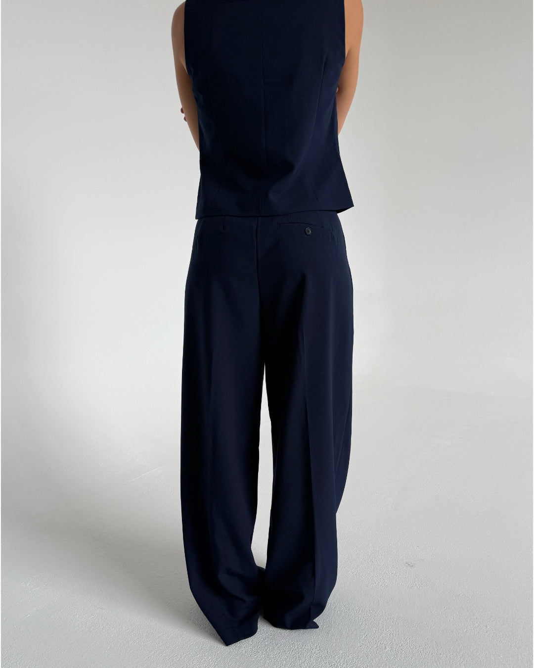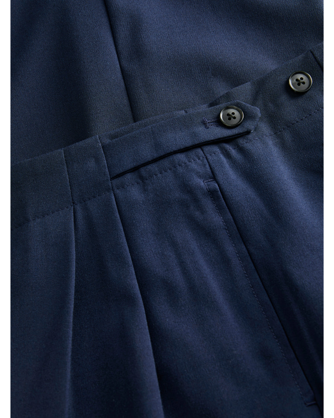 Detaljefoto af navyblå KATE bukser. Fra BySofieSønderby