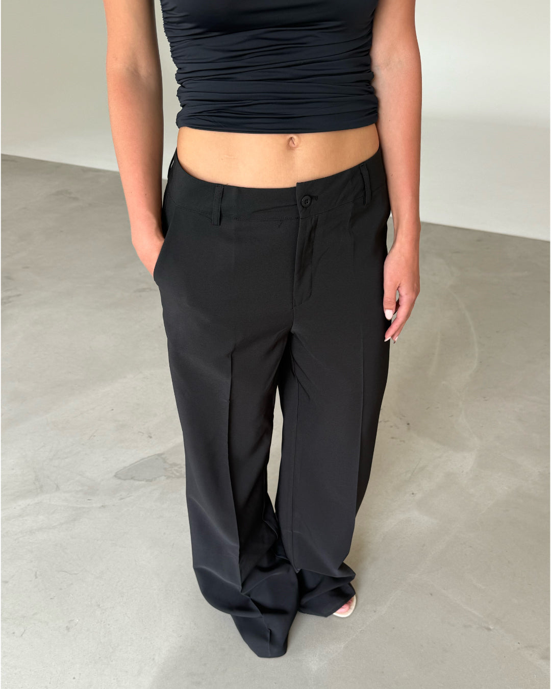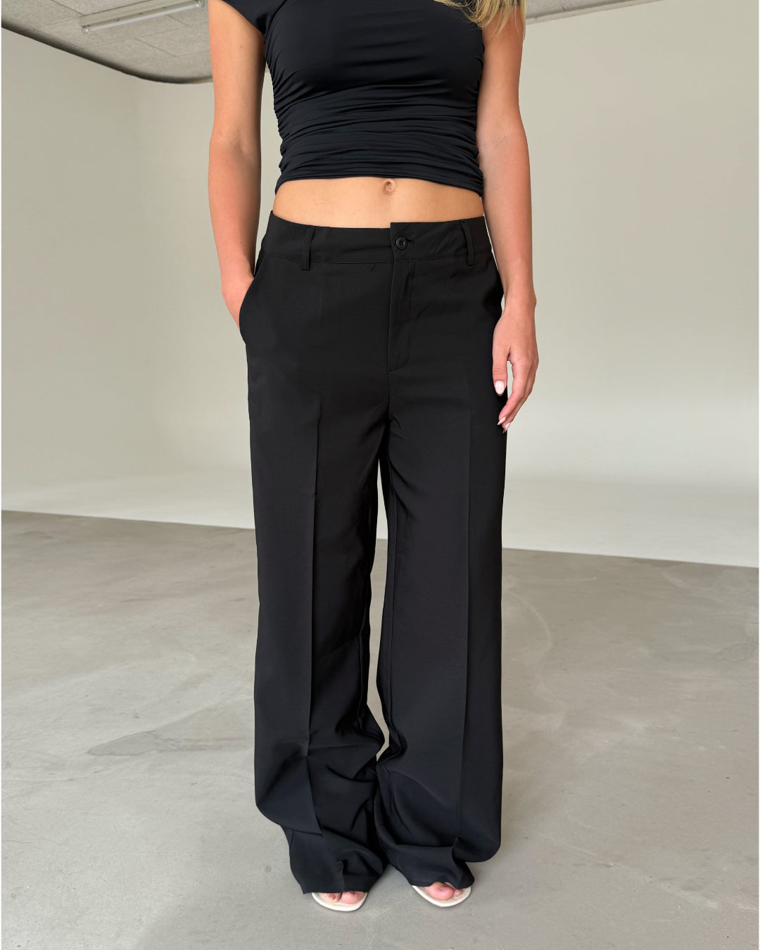 De perfekta SELENA byxorna, svart är ett par basic svarta wide leg byxor, som sitter super fint på kroppen. Byxorna är lågmidjade, lösa och lätta i tyget.