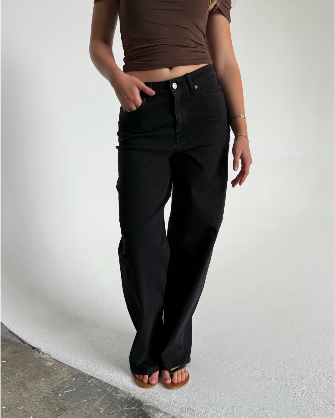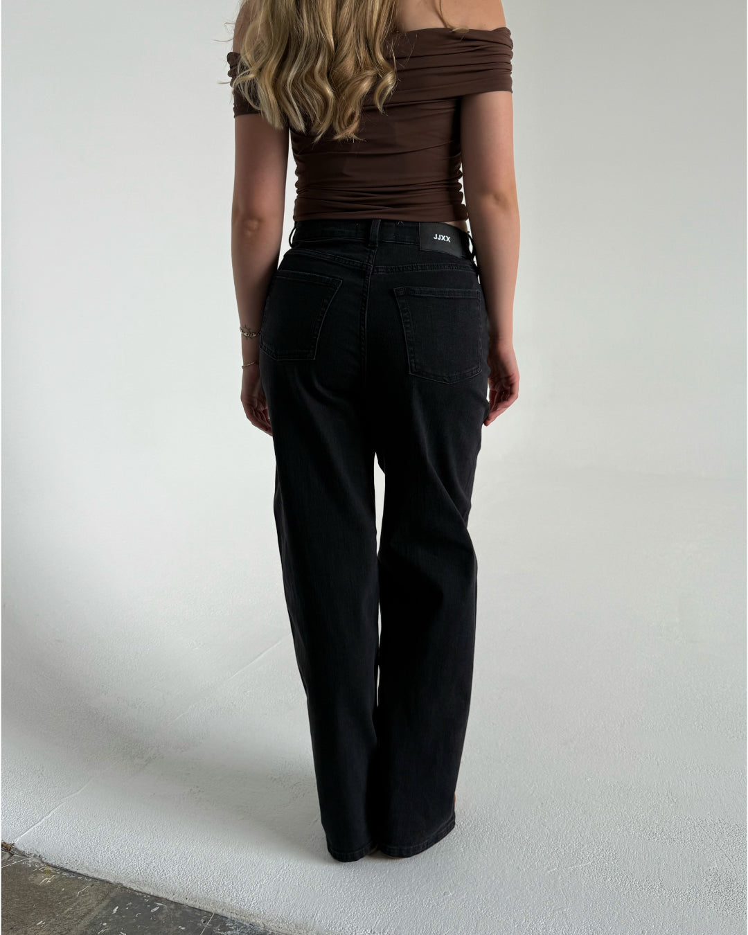 TOKYO wide leg jeans, svart är en enkel men stilren passform. Byxorna har både fram- och bakfickor samt bälteshällor.
