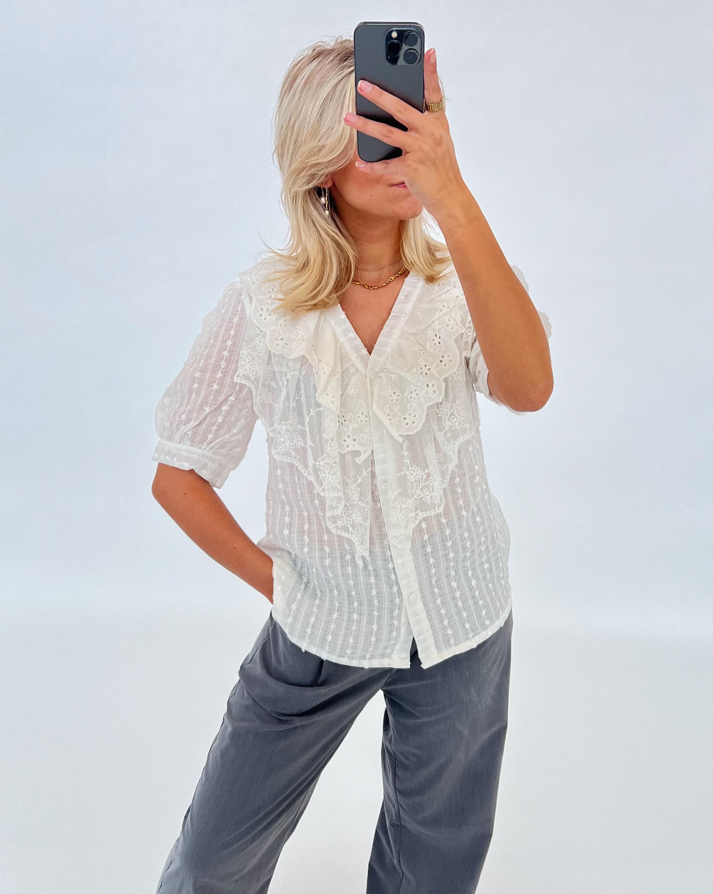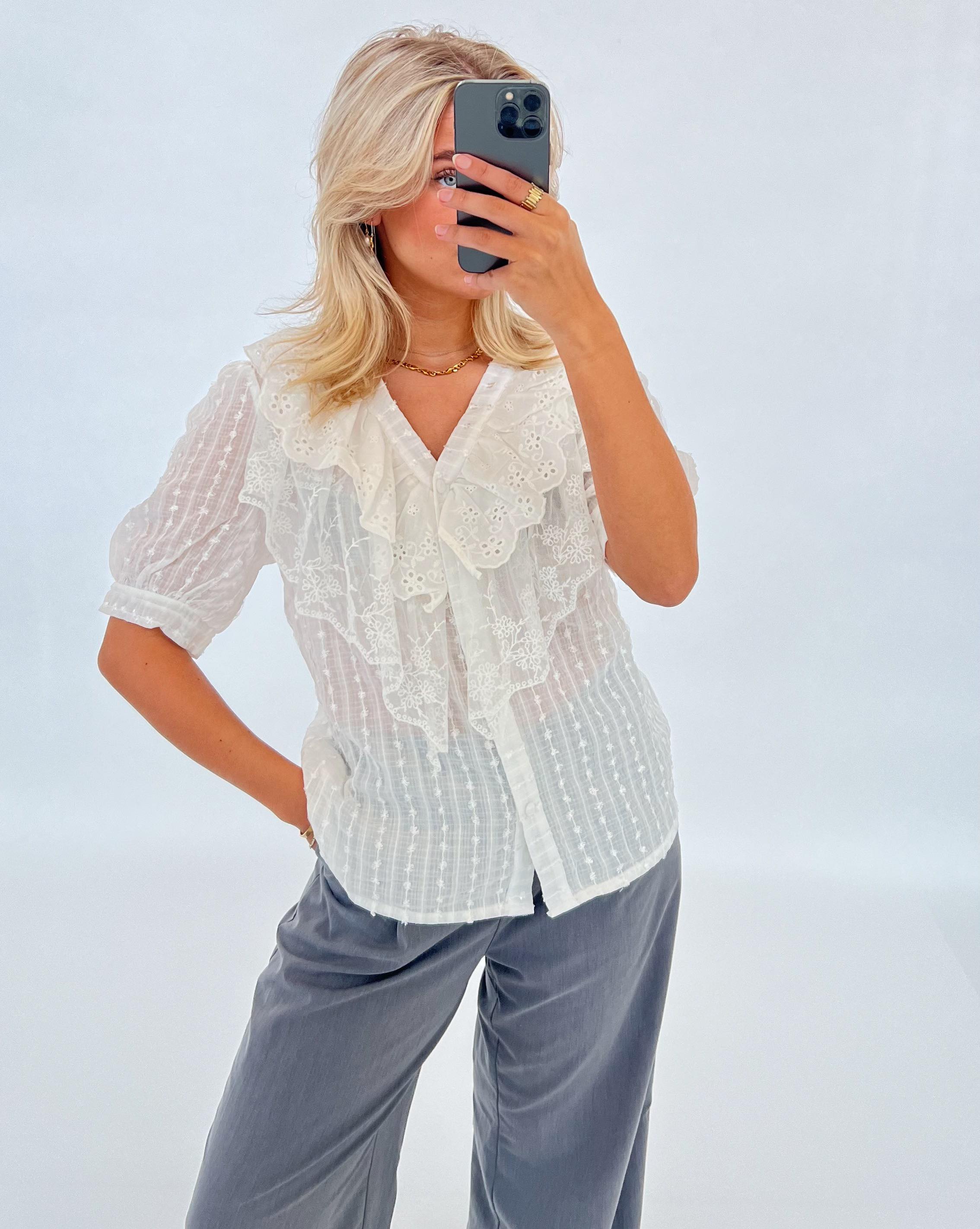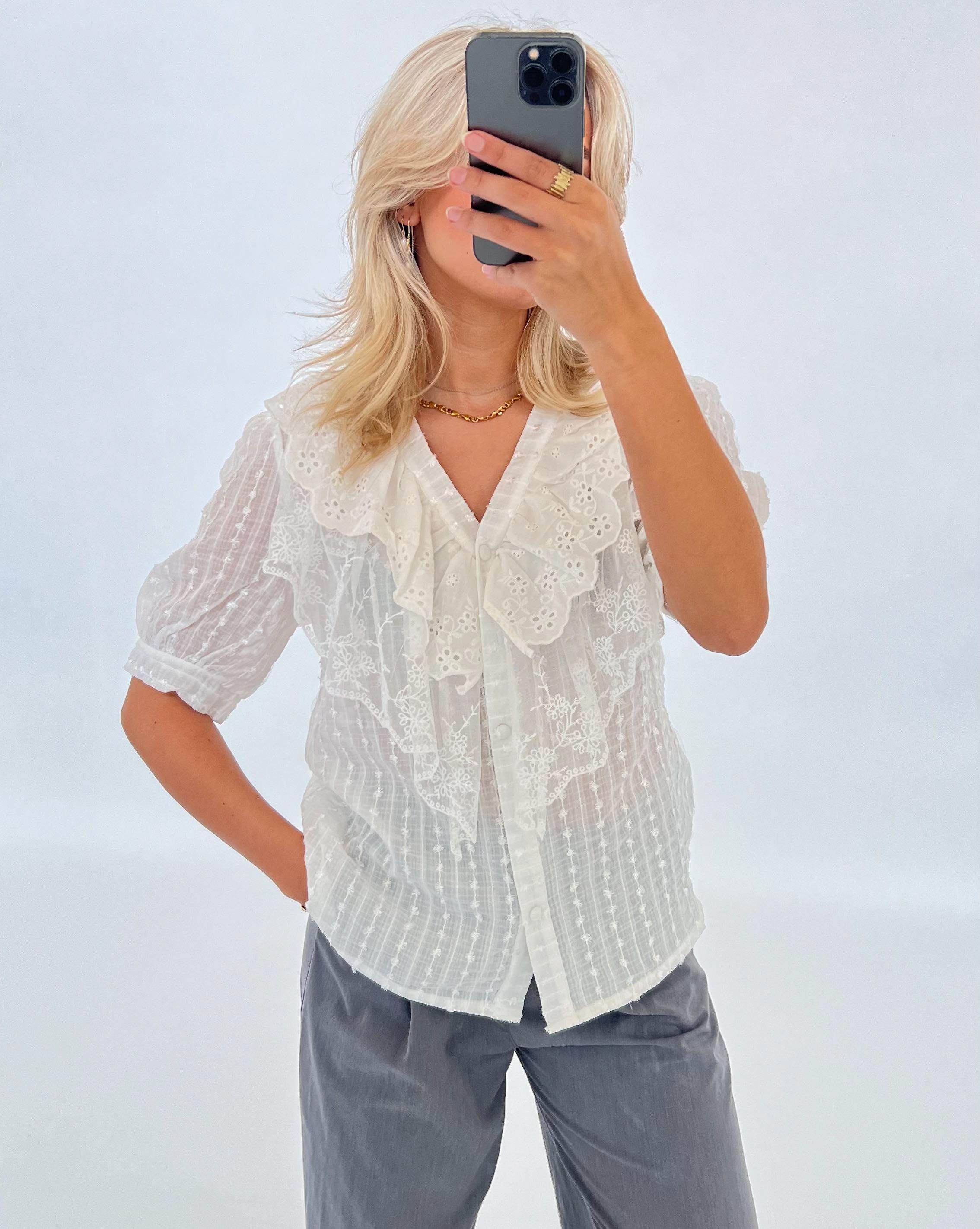 Den vackra MAJA blusen, vit kan vara med och lyfta din outfit.
