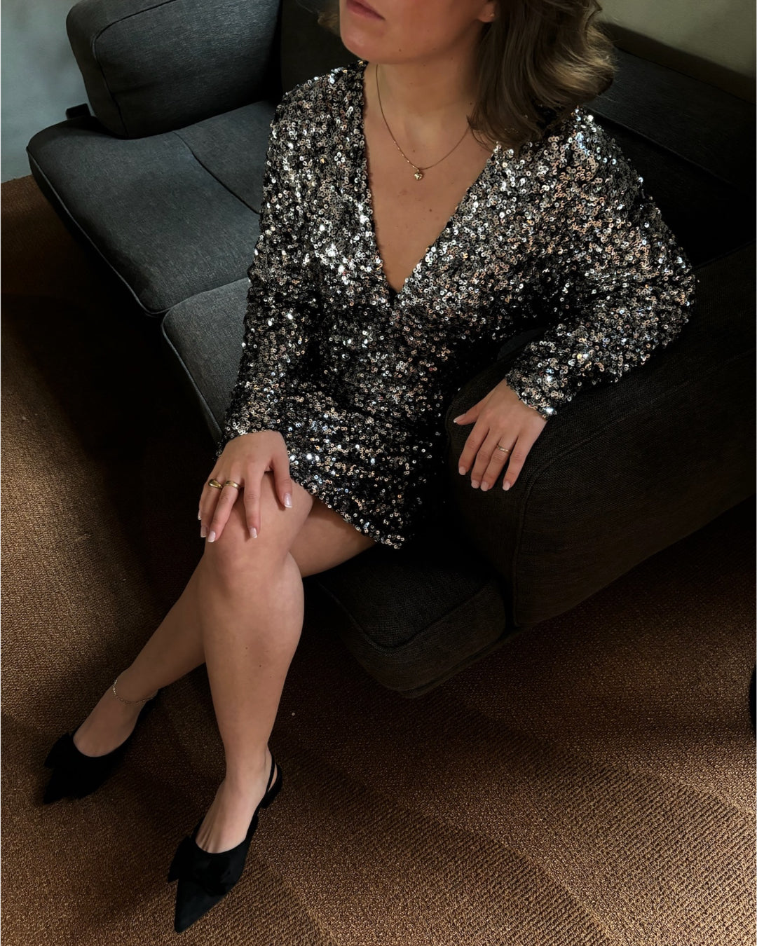 PAYTON klänning, silver är en stilren klänning, med de vackraste paljetterna. Klänningen är perfekt för de kommande högtiderna.