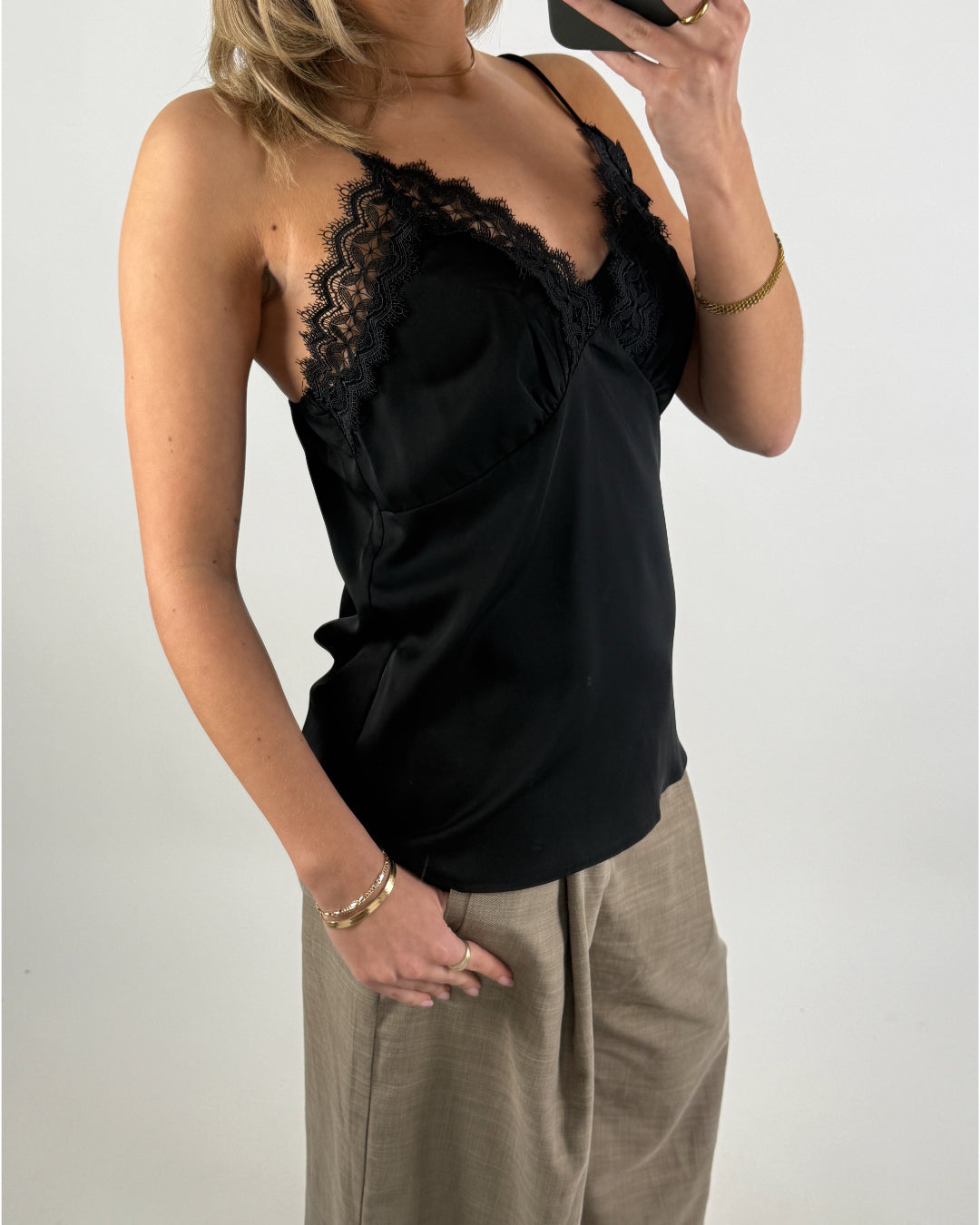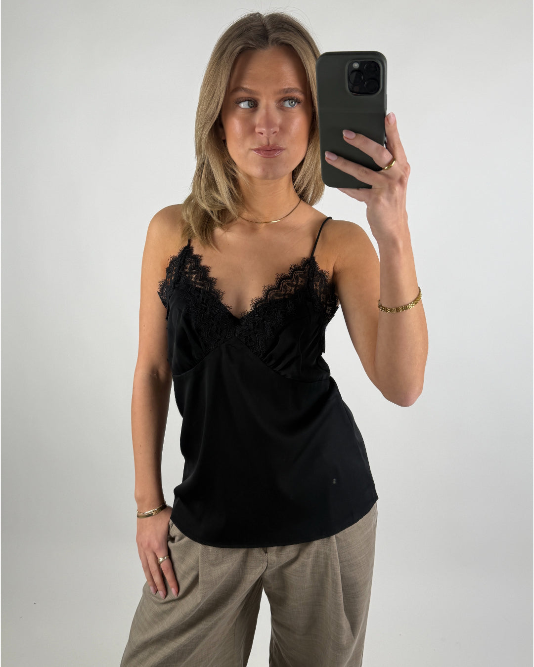 Vår vackra BAILEE topp, beige är en verkligen vacker spets topp med tunna band och en fin bred spetskant över bröstet.
