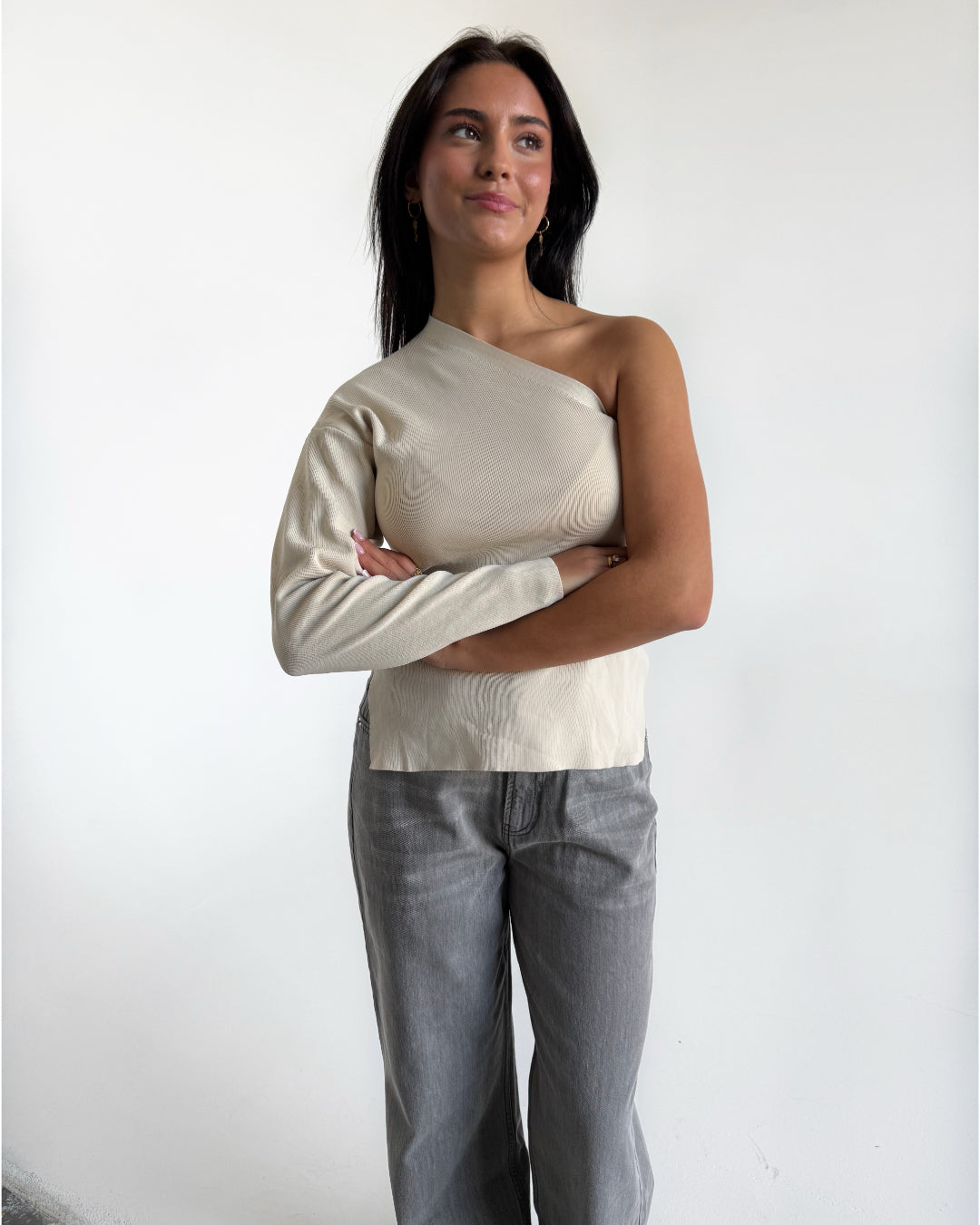 COLLINS one shoulder blus, beige kan bäras till avslappnad stil med ett par jeans, men kan också kläs upp med ett par fina byxor och stilettklackar.