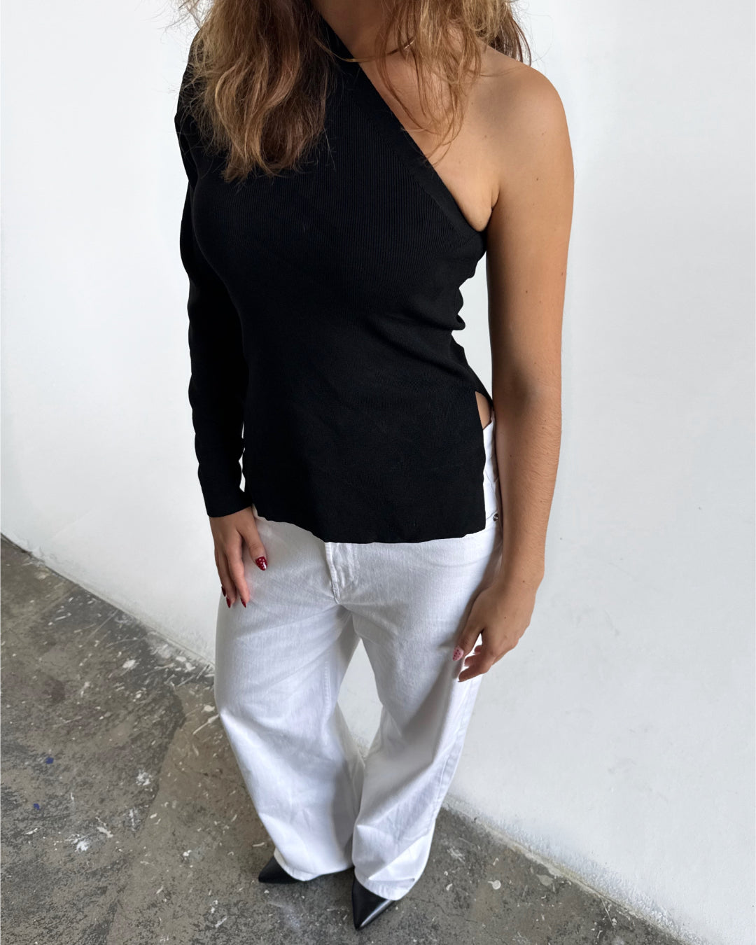 Vår fina COLLINS one shoulder blus, svart har just landat i shoppen. Blusen är fin med sitt asymmetriska snitt och kommer att vara perfekt för både vardag och fest.