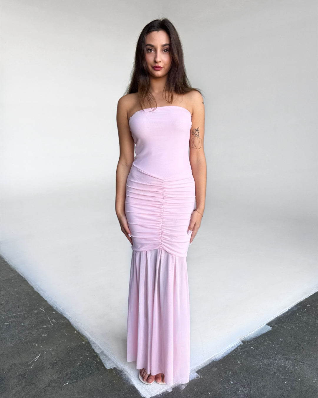 Vår EMELIA klänning, ljusrosa är en vacker maxiklänning, i en otroligt feminin look.