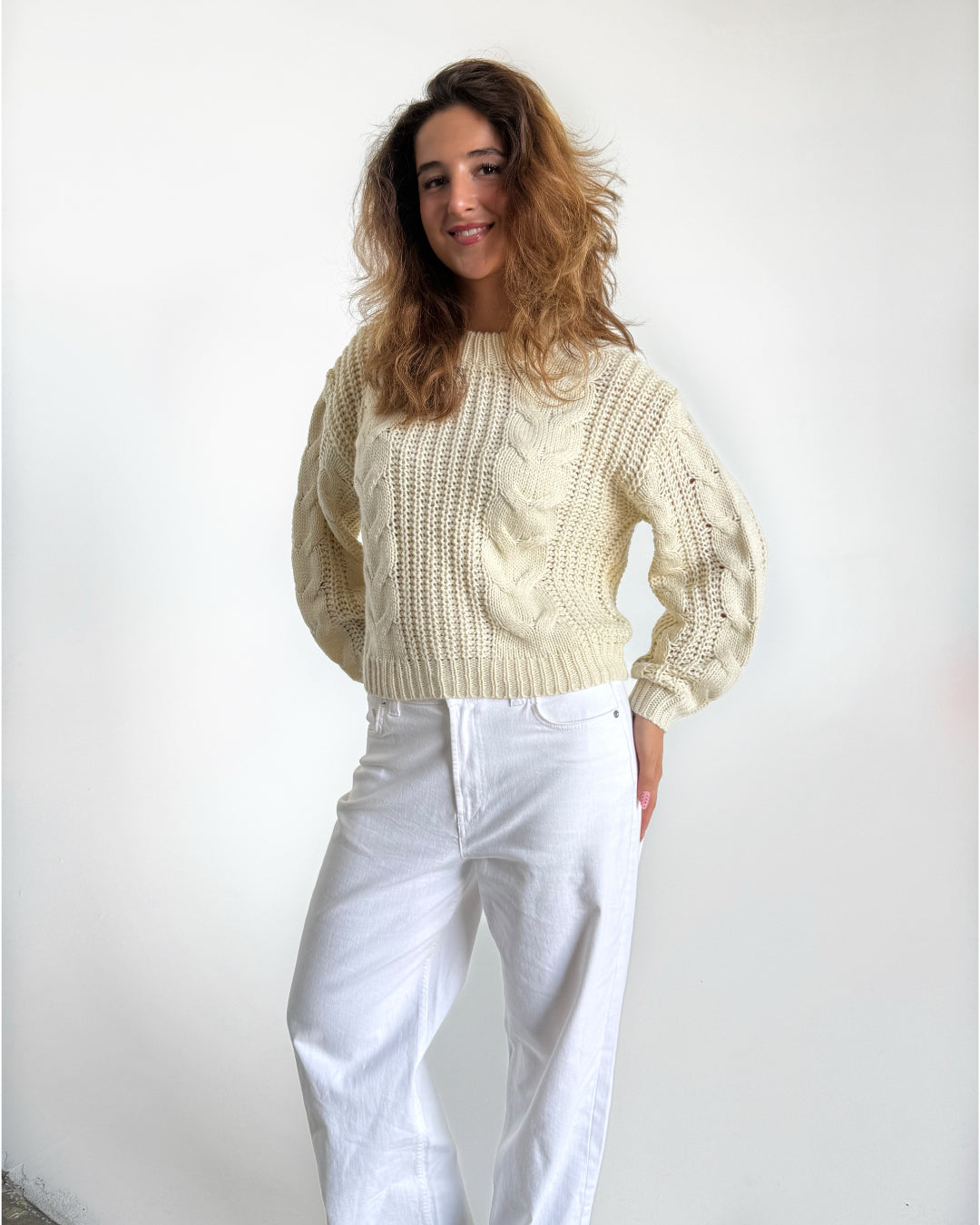 KELLY sticka, creme är den läckraste mjuka och basic kabelstickningen, som kommer att vara oumbärlig under de kalla månaderna. Stickningen är en garderobsklassiker och kommer att vara perfekt till både ett par jeans eller en snygg kjol.