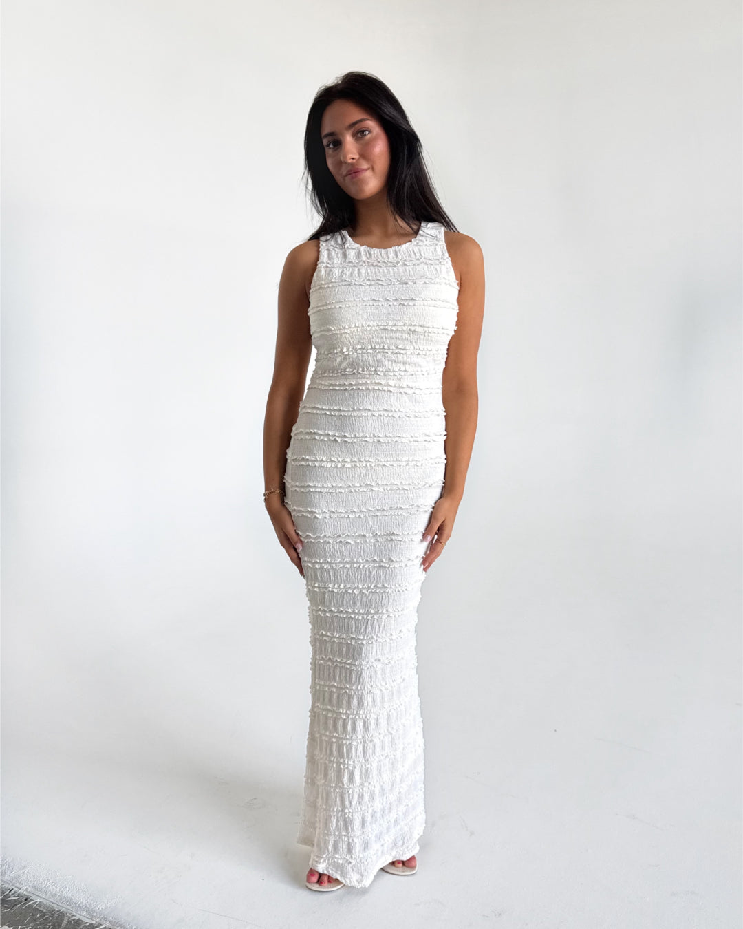 Vår KIMBERLY klänning, creme är en vacker maxiklänning, i en otroligt feminin look.