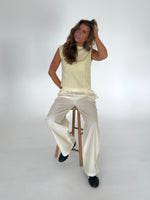 CAJSA randiga byxor, gul är tillverkade med breda ben och elastik i midjan, som du kan vika en gång för att få dem mer low waisted.