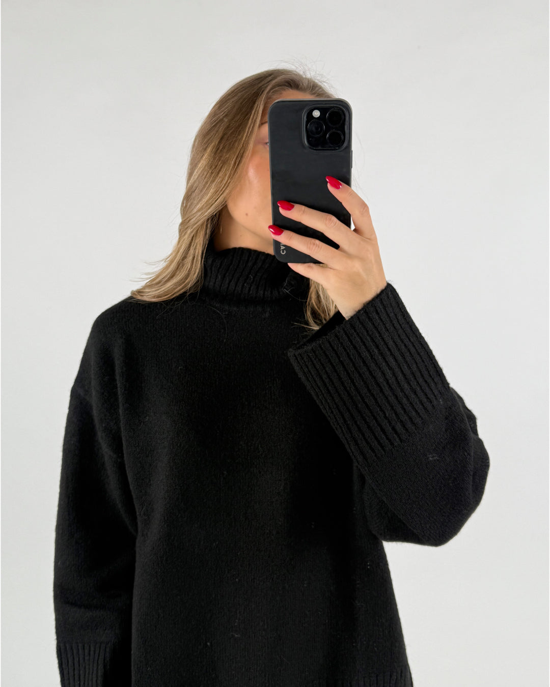 ALIA sticka, svart är en perfekt basic att ha i garderoben. ALIA sticka, svart är en sticka med rullkrage och slits bak. Sticktröjan är långärmad och i ett stretchigt material.