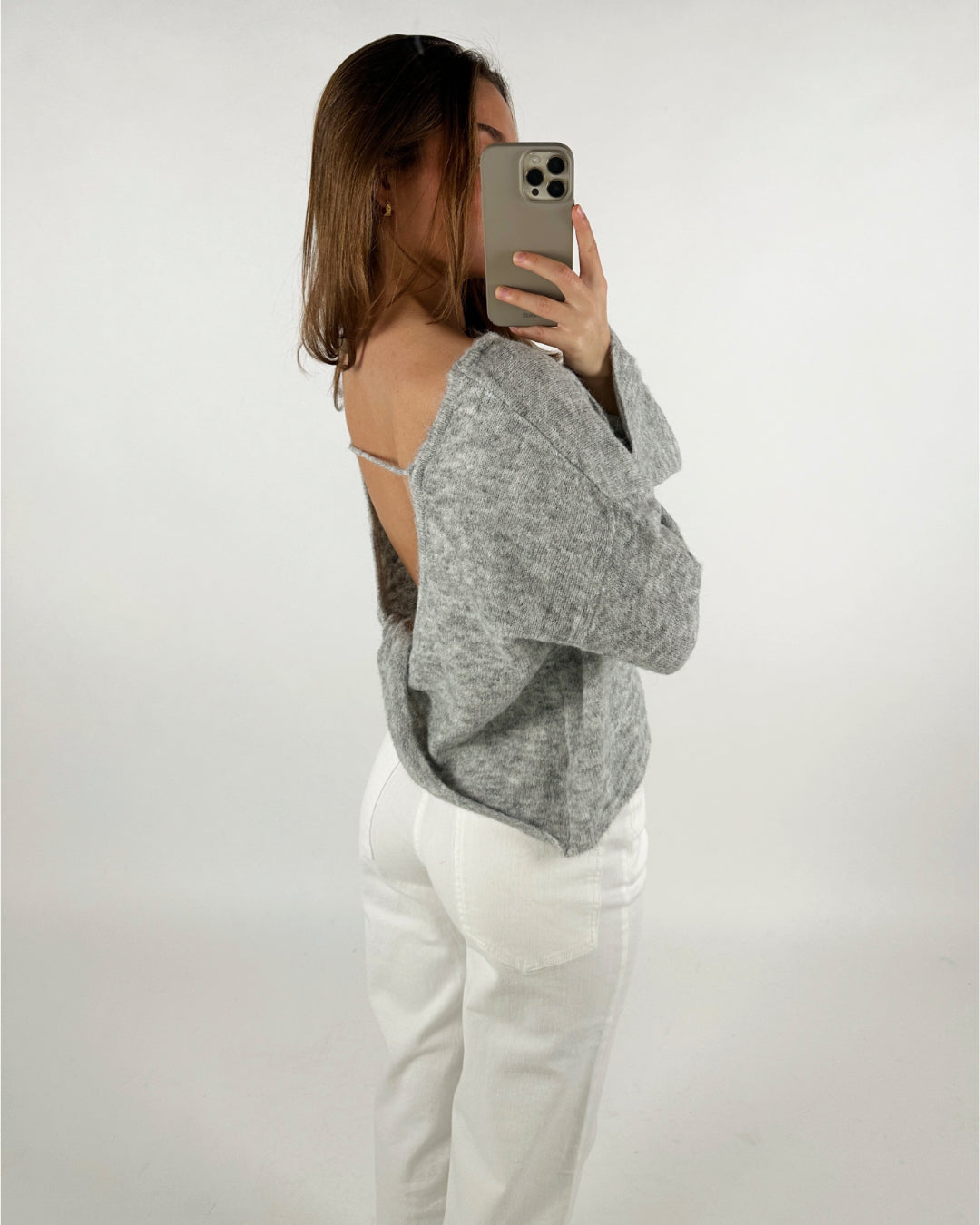 Den vackra MANJA sticka, grå har öppen rygg, vilket ger den ett elegant uttryck. MANJA sticka, grå är en läcker sticka och perfekt för våren.