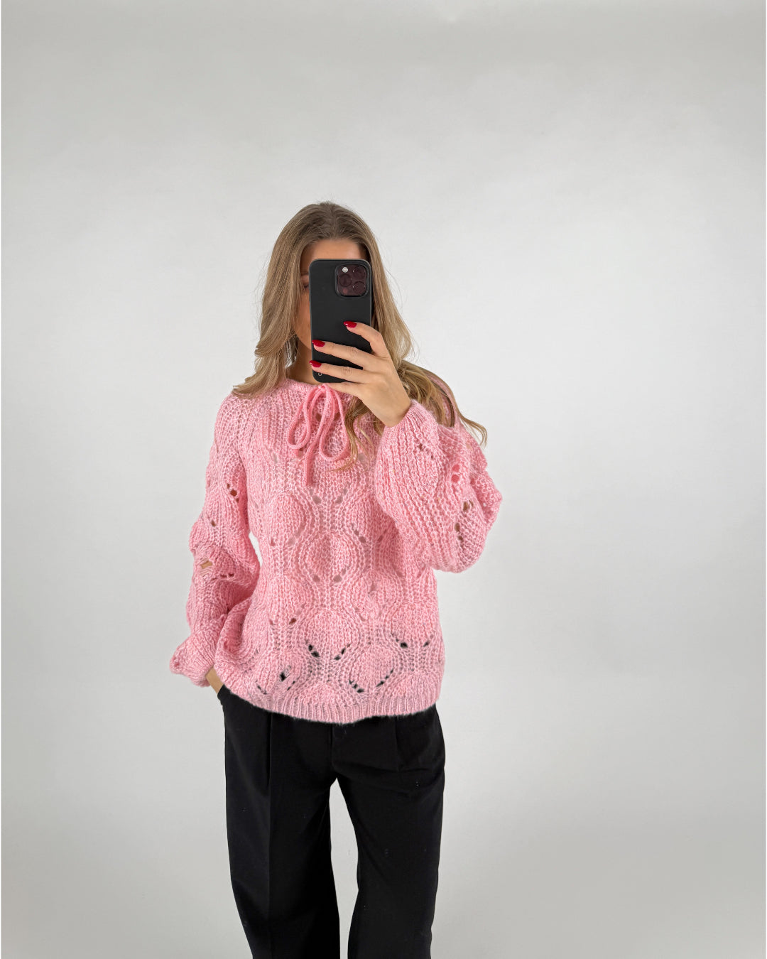 MARGO sticka, ljusrosa är en perfekt basic att ha i garderoben. Sticktröjan är långärmad och har de finaste detaljerna. MARGO sticka, ljusrosa är designad med en snörning vid kragen.