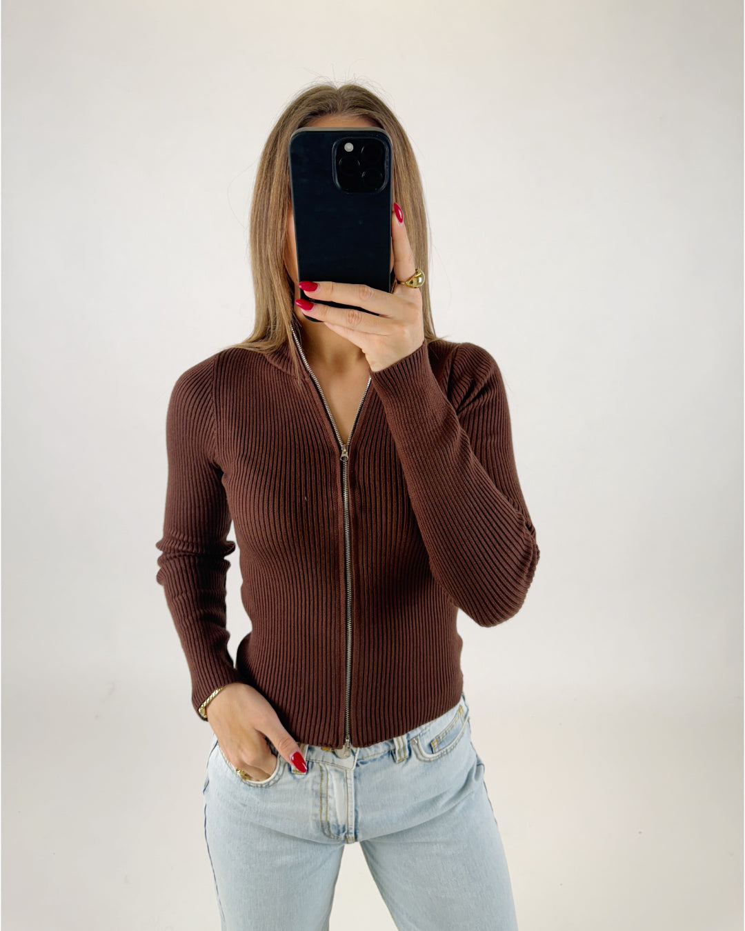 Den vackra MONIKA blusen, brun är en cool, zipstickad blus, i det mjukaste materialet. Vår MONIKA blus, brun är den perfekta och unika zipstickade blusen, som är ett klart måste i garderoben.