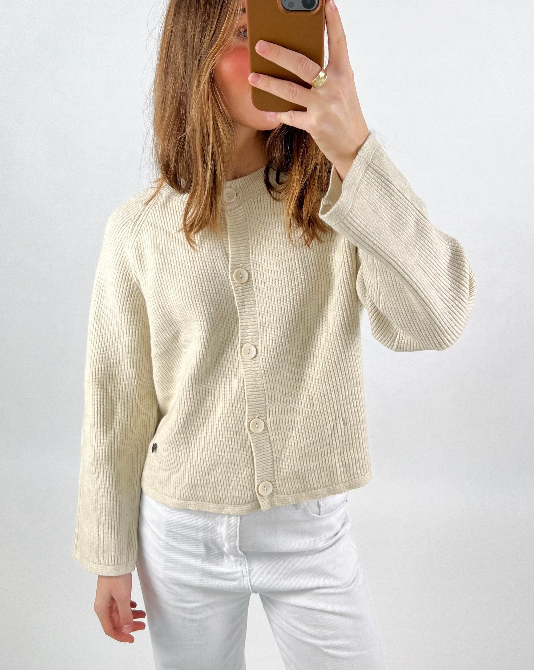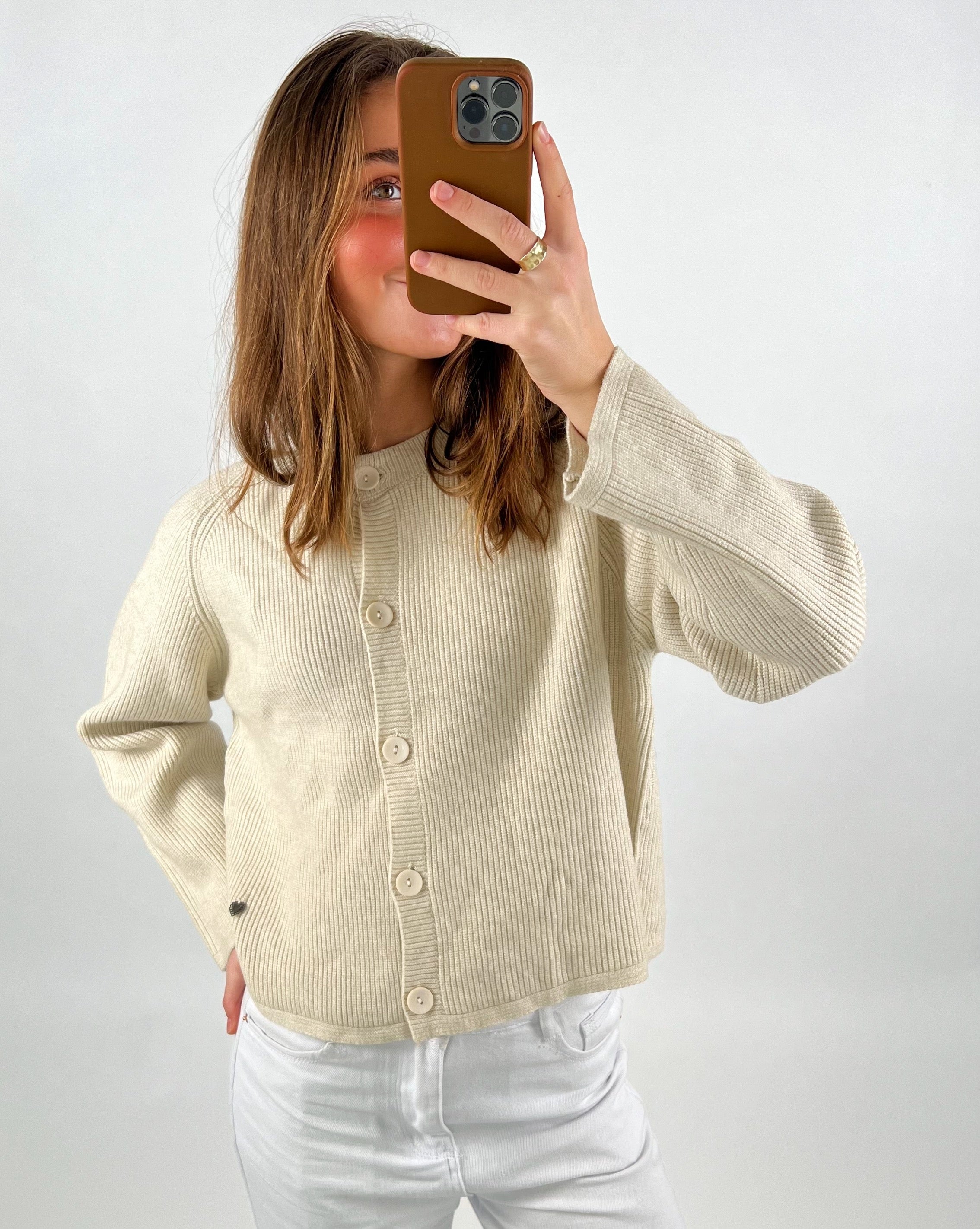 NELLY cardigan, creme är en garderobsklassiker, och så är den gjord av mjuk blandning, som ger den komfort och stil.