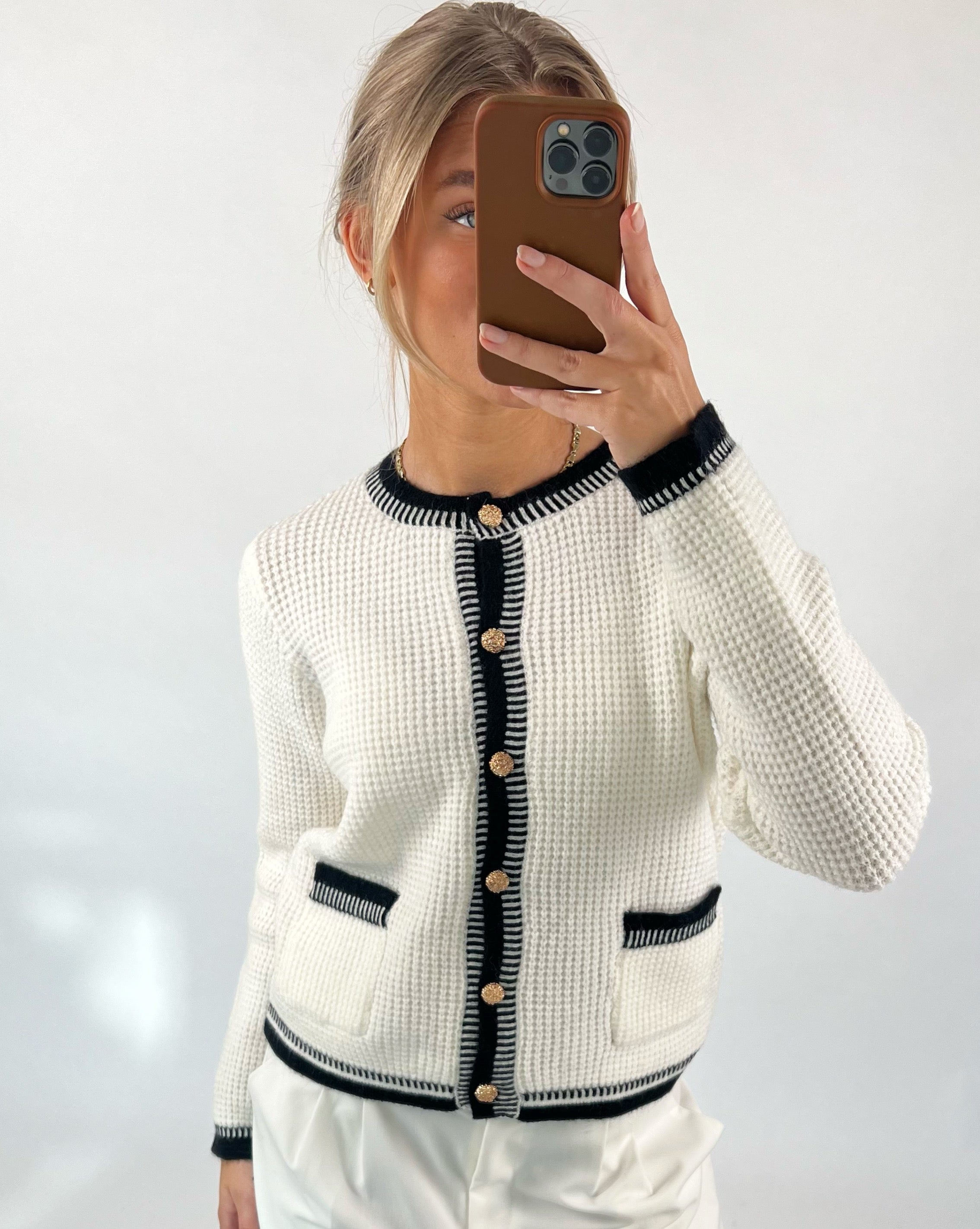 Vår QUINN sticka cardigan, vit är den perfekta eleganta cardigan, som är ett klart måste i garderoben.