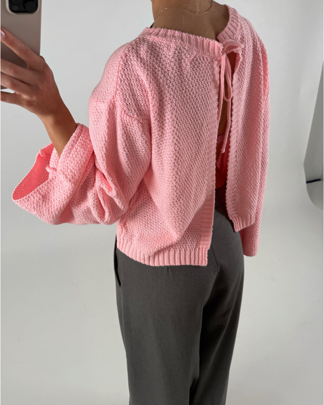 Den vackra SHELBY sticka, ljusrosa har öppen rygg, vilket ger den ett elegant uttryck. SHELBY sticka, ljusrosa är en läcker sticka och perfekt för våren. Stickan kan vändas efter eget önskemål (se bilder)