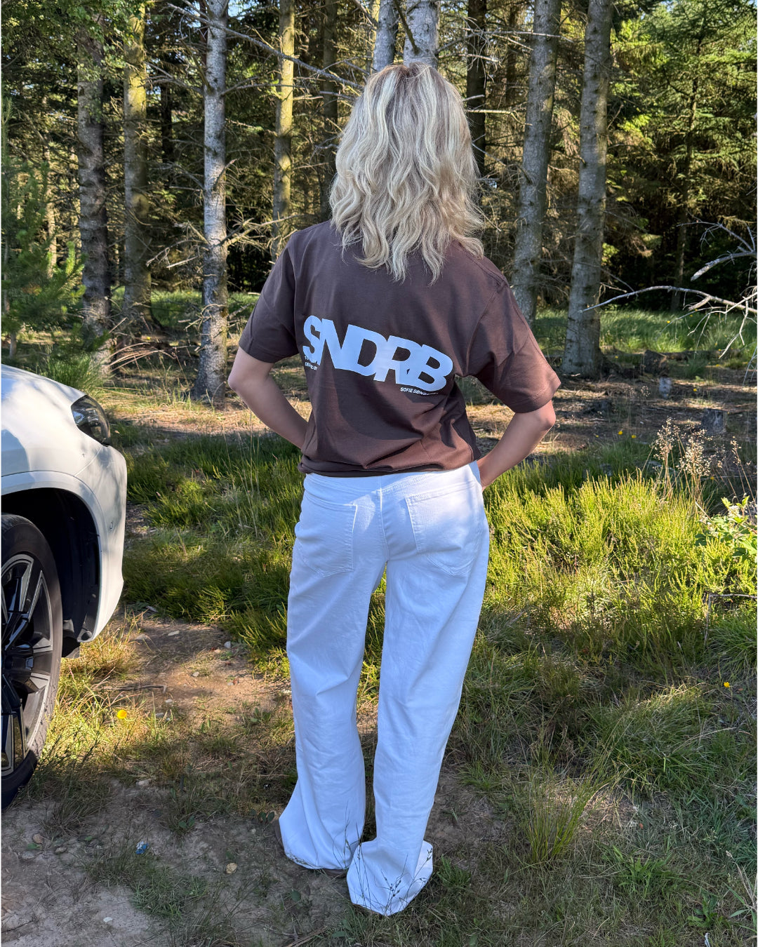Den stilrena SNDRB t-shirten, brun/grå har en enfärgad framsida, men sticker ut med ett coolt tryck på ryggen.