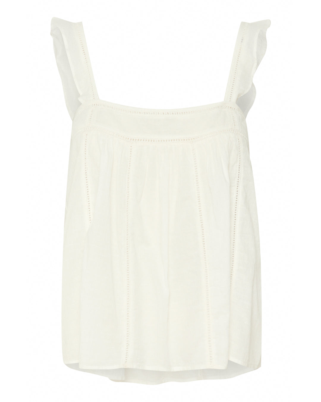 AMONA toppen, vit har fyrkantig utskärning vid hals och rygg.
