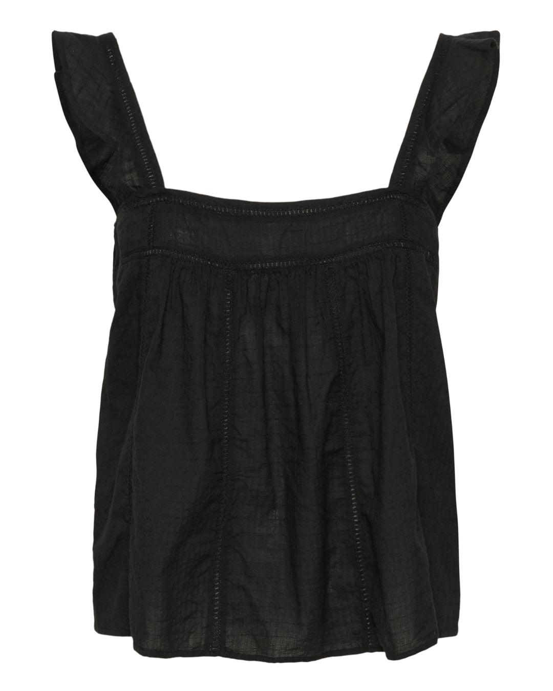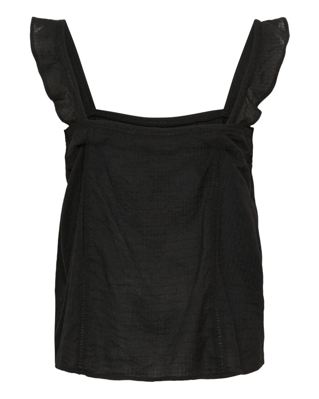 AMONA toppen, svart har fyrkantig utskärning vid hals och rygg.
