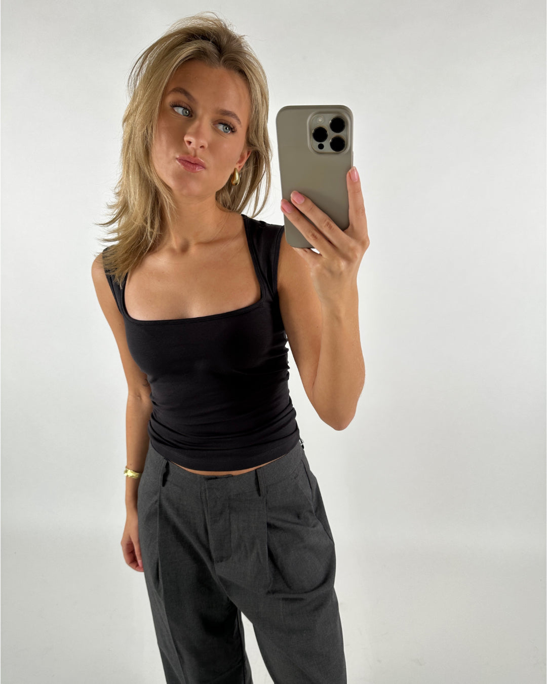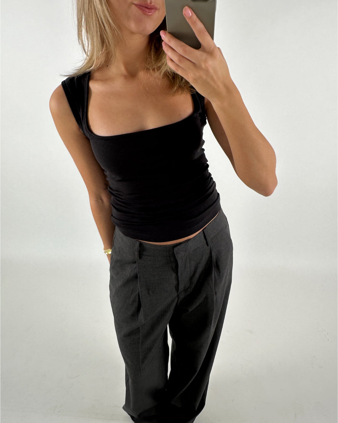 Den vackra ISABELLA toppen, mörkgrå har nu landat i shoppen. Toppen är gjord i ett bekvämt material och har en fyrkantig utskärning.