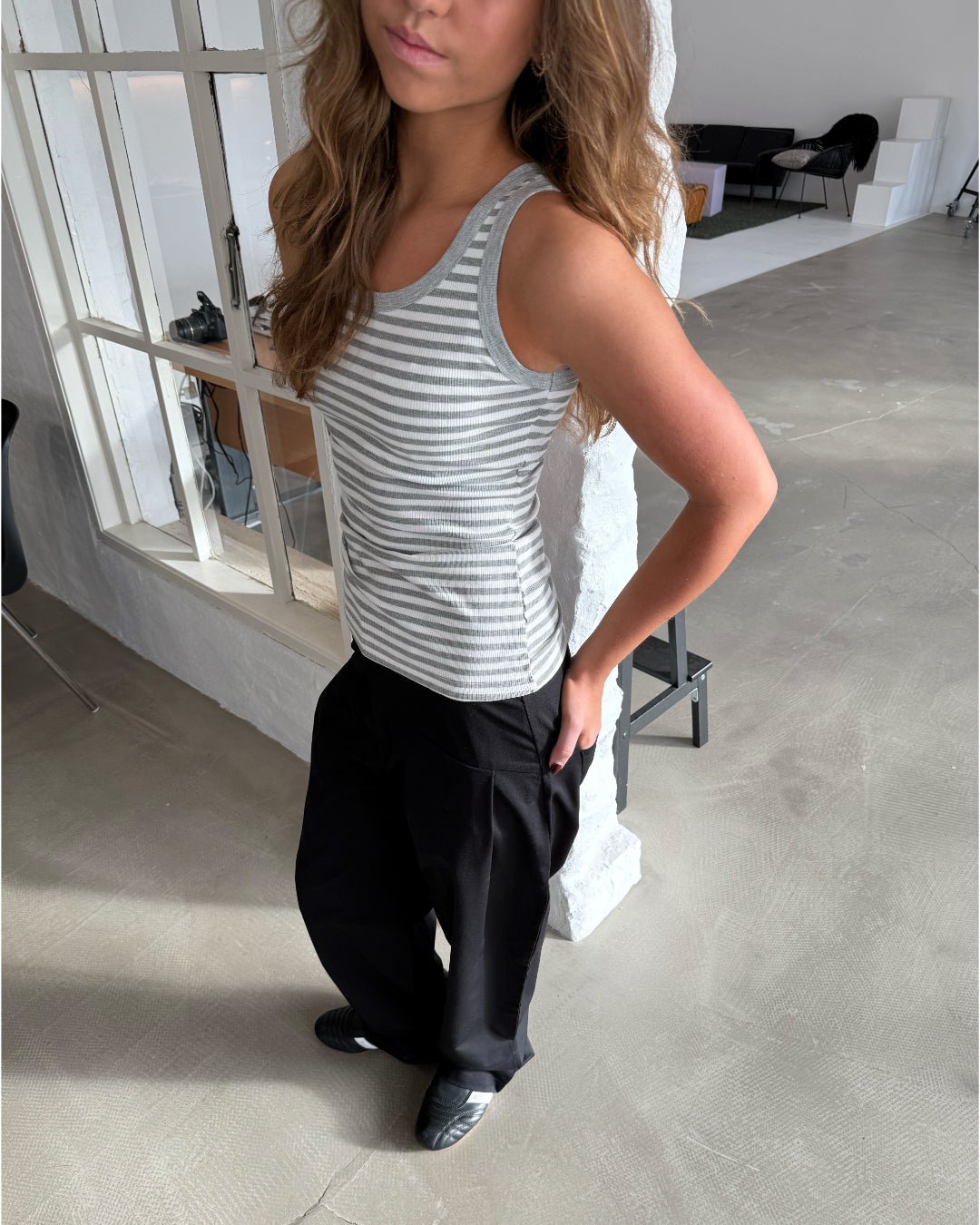 Den vackra JULIANE toppen, grå har nu landat i shoppen. JULIANE toppen, grå har ett enkelt uttryck, med sina fina naturliga ränder. Toppen är producerad i ett stretchigt material och har en djup utskärning. JULIANE toppen, grå kan stylas och kombineras efter eget önskemål.