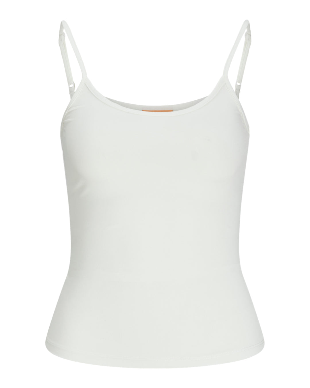 Den vackra basic SAGA top, vit har nu landat i butiken. Toppen är fin och enkel med tunna band, perfekt under andra tröjor.