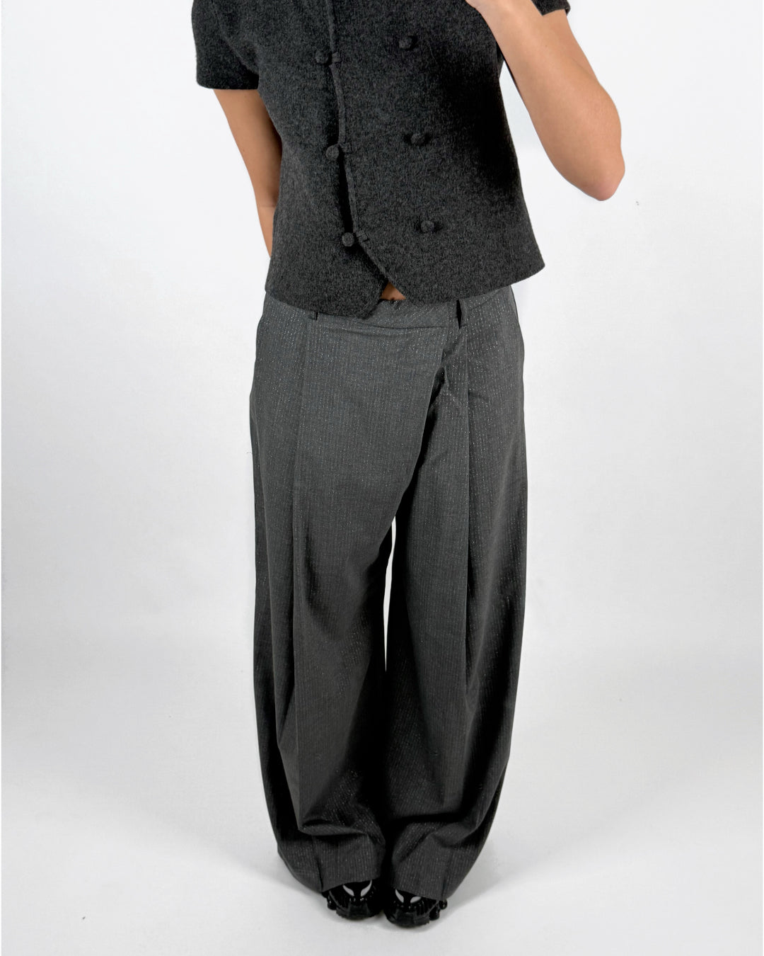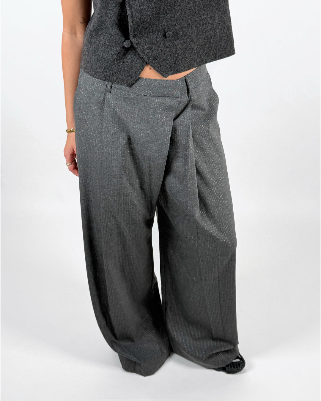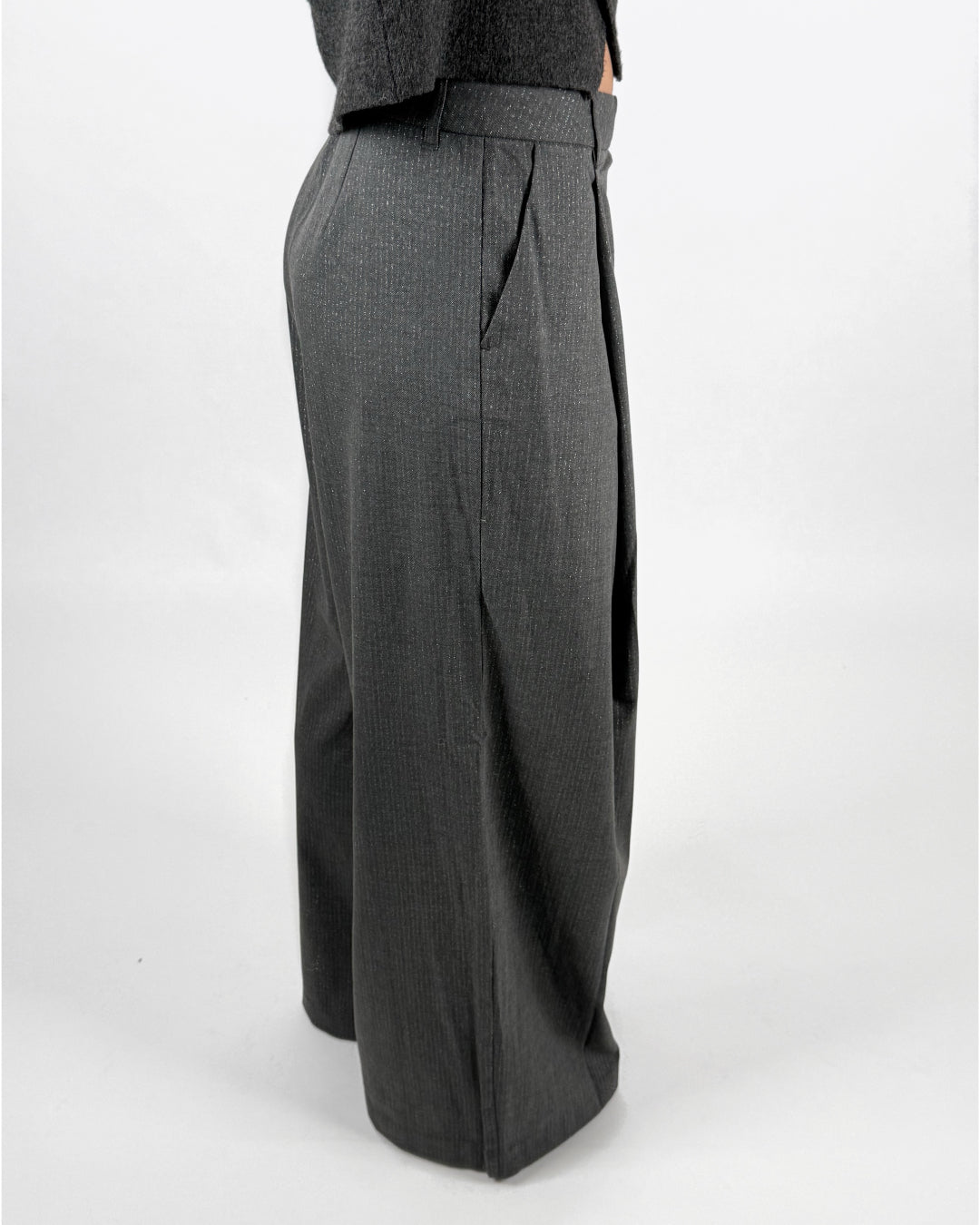 Våra vackra JOANNE byxor, grå är perfekta om man önskar något enkelt, men med extra fina detaljer. Byxorna är i ett mjukt material och passar perfekt till alla festliga tillfällen.