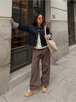 Byxorna har bakfickor, framfickor och en medelhög midja. Våra MADDY byxor, brun/ljusrosa kan stylas med matchande jacka, vilket bidrar till att skapa en cool outfit.