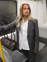 Blazern har en enkel knapp fram och kan därför vara både öppen eller stängd. Ärmarna är normala och har en rak look. Dessutom har blazern två fejkfickor.
