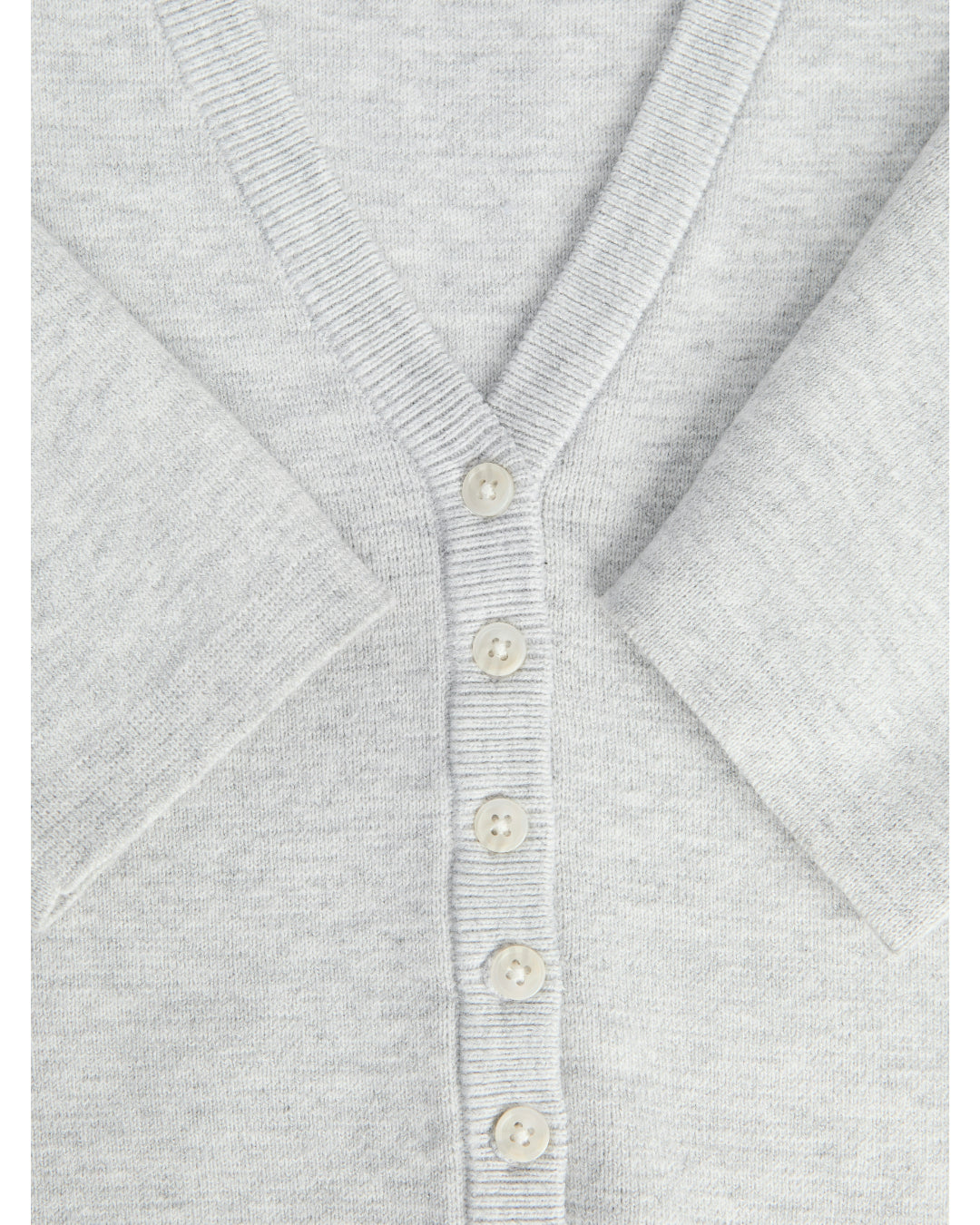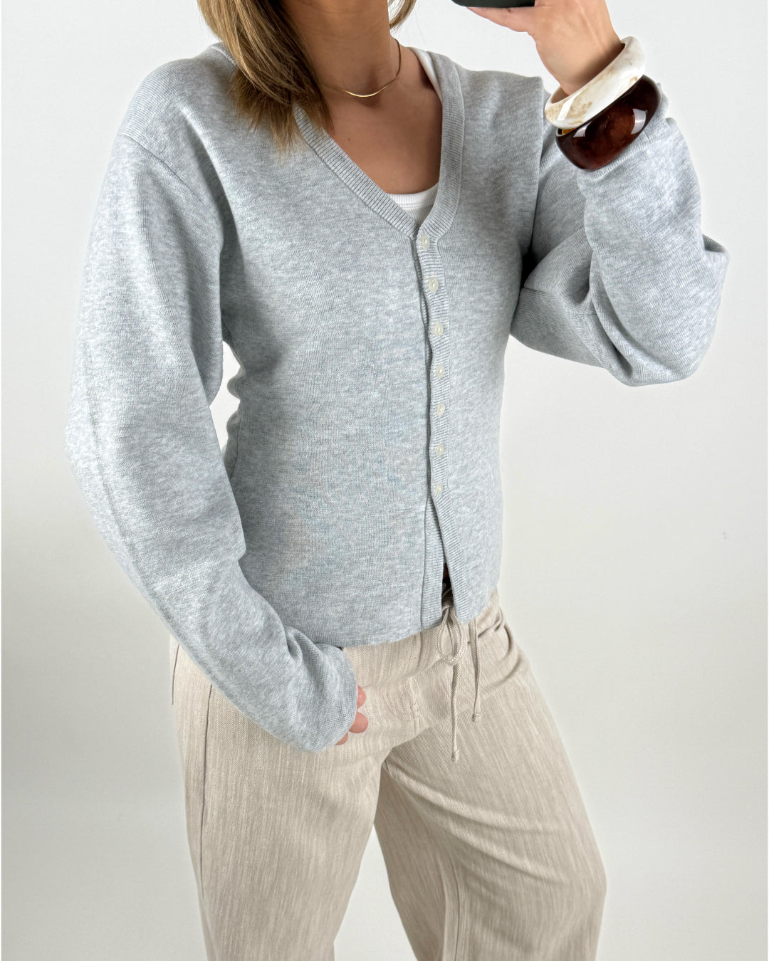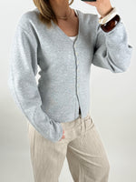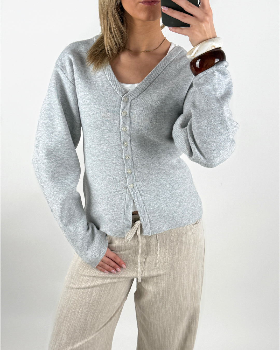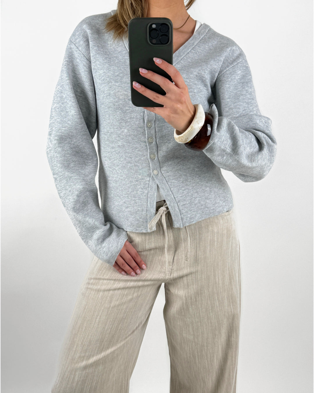 Denna klassiska DIANA cardigan, grå är designad med en elegant V-ringning och stängs med fina knappar fram. Cardiganen är utförd i en mjuk, ljusgrå kvalitet, vilket gör den både bekväm och stilfull.
