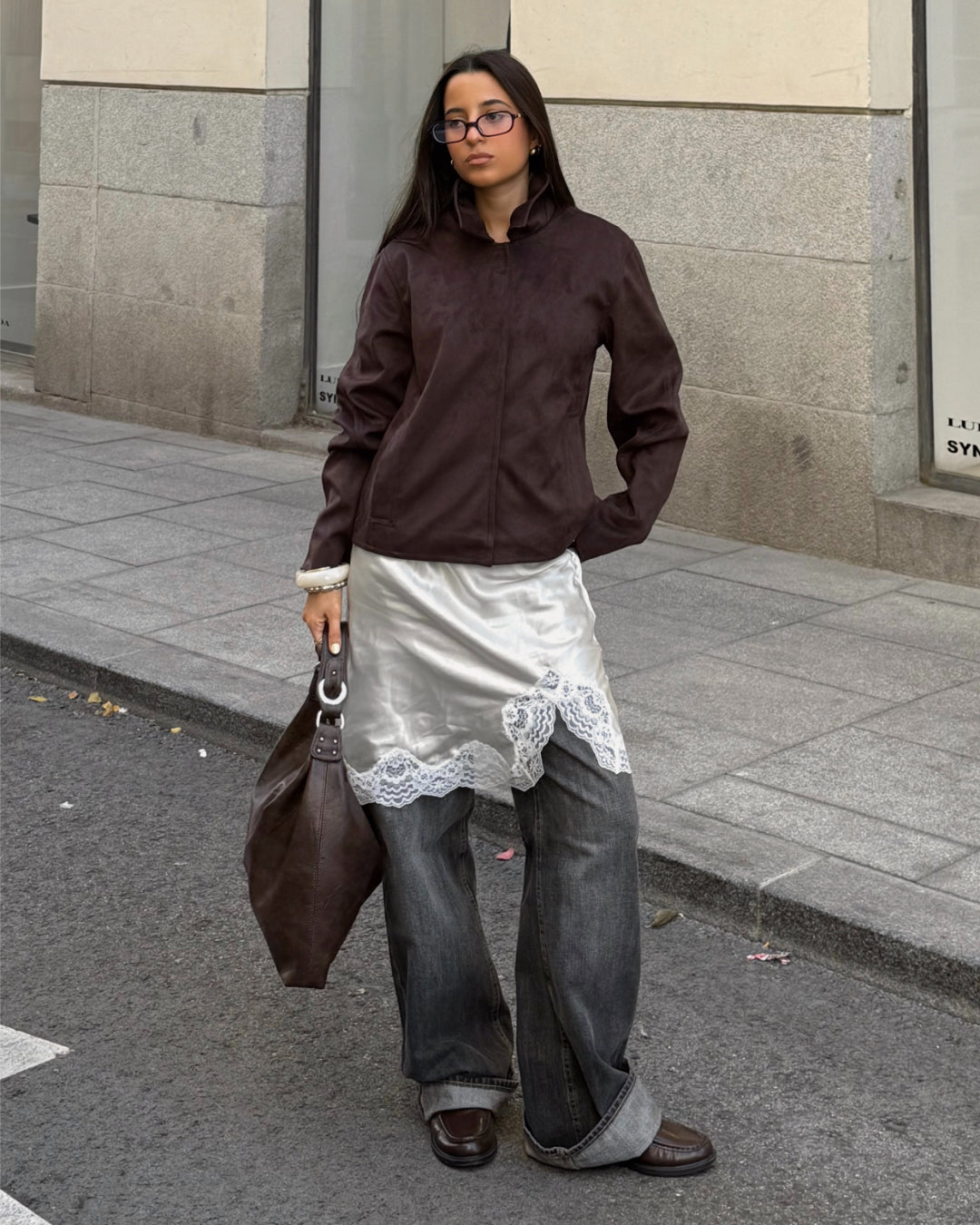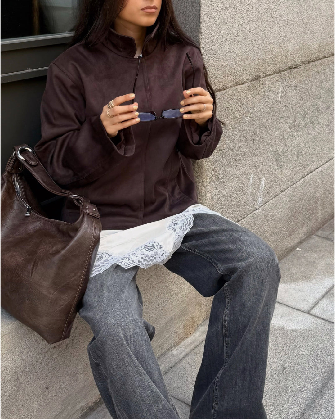 Den smukke ALLIE jakke, brun den perfekte ruskinds efterårsjakke. Jakken er i et ruskinds look, som vi ved i elsker!