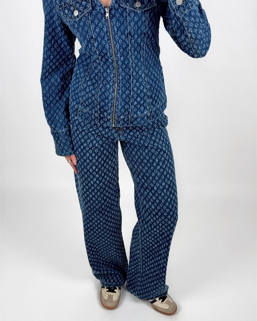 De smukke SAVA denim jeans, blå er de fineste wide leg denim jeans. Bukserne har et smukt mønster i stoffet, som giver en smuk detalje, til den ellers klassiske form.