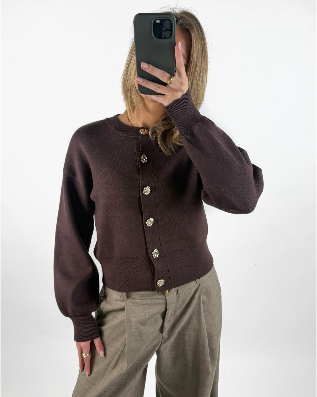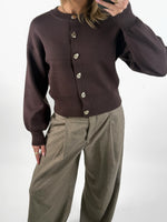 BALIA cardigan findes i to farver - denne smukke chokoladebrune farve og en helt lys beige.