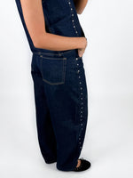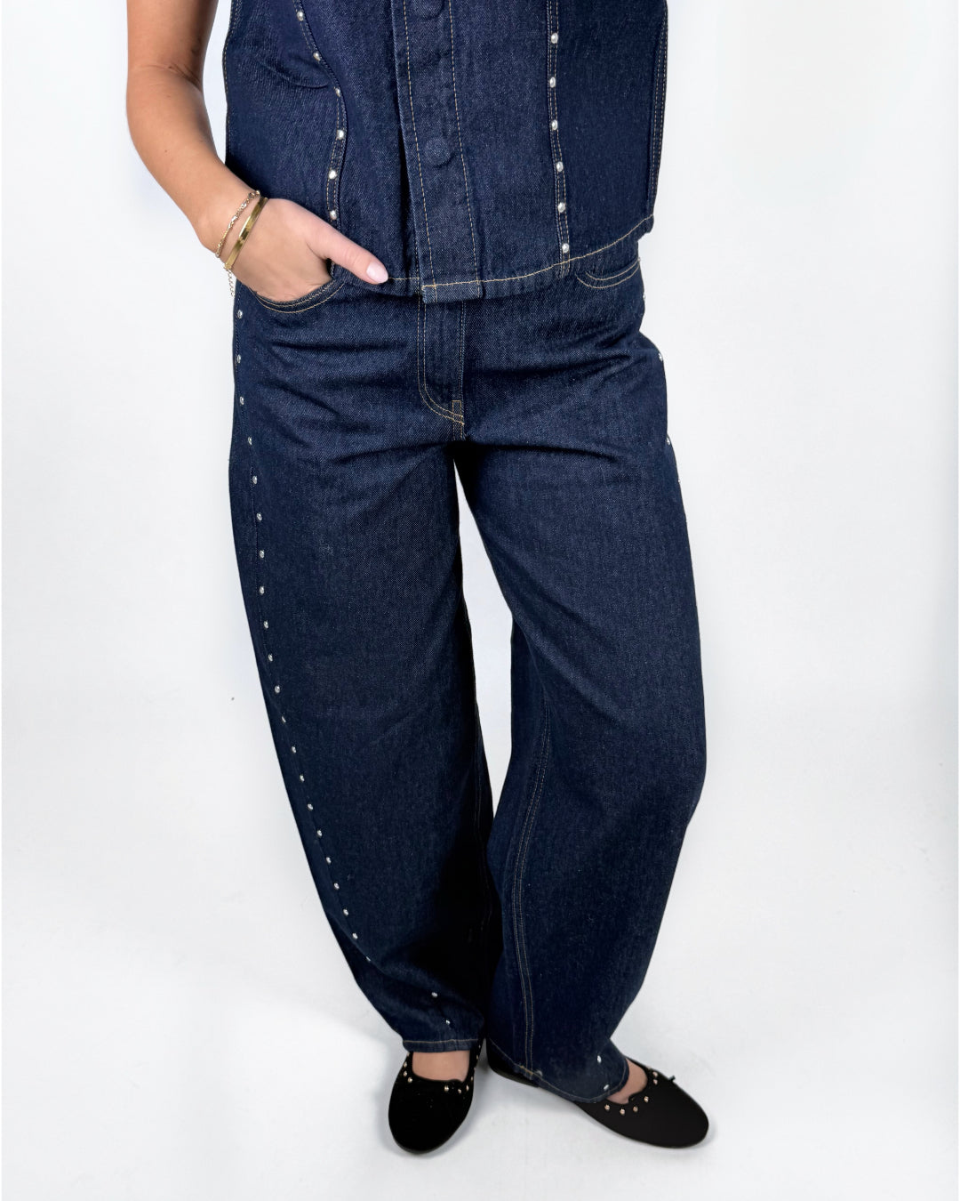De smukke FUJI barrel jeans, mørkeblå er de fedeste mørke jeans med studs på siden. Jeansene har en matchende overdel til, men kan også sagtens styles med andre overdele.