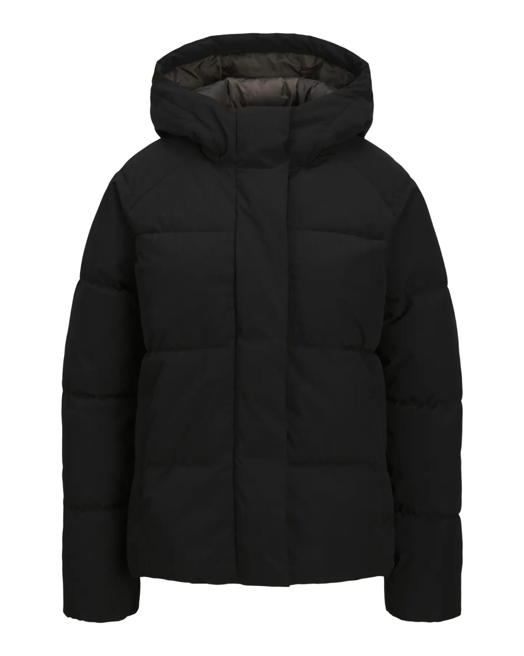 Produktbillede af sort Global puf jakke set forfra. Fra BySofieSønderby