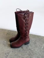 De lækre KIMBER støvler, bordeaux er en høj støvle. De har en fed detalje med snører på siden af støvlen, hvilket giver et lækkert og anderledes look.