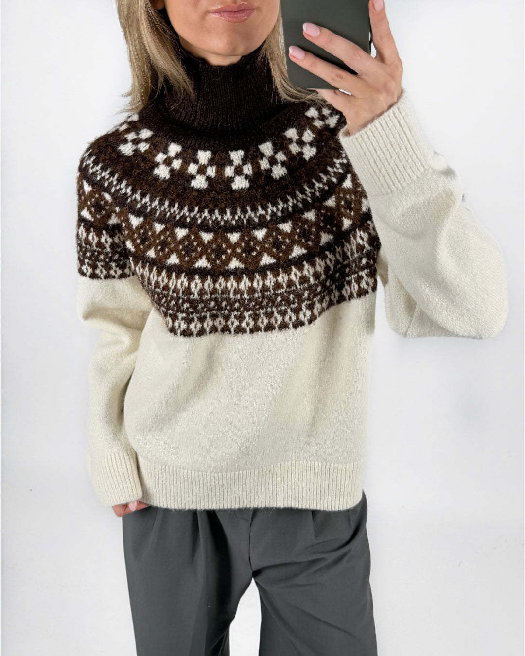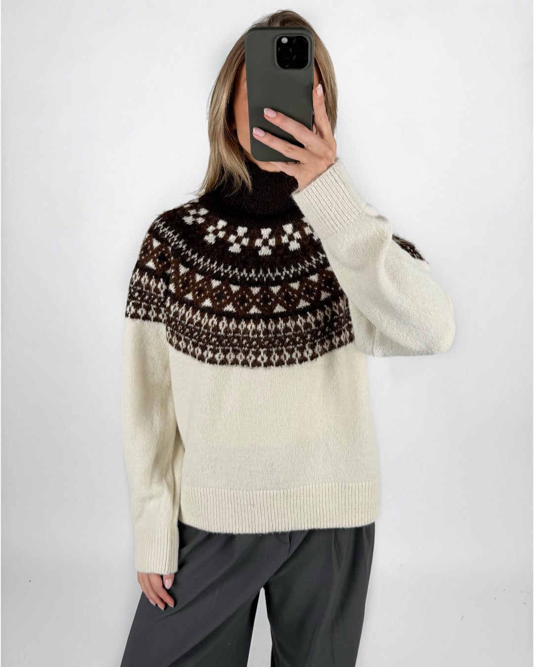 KRISTIN strik, hvid er en blød, flot og detaljeret strik. Strikken er perfekt til det koldere vejr, og så er kan den bruges til alle former for lejligheder. Den kan styles med et par jeans, men også dresses op med en skjorte under.
