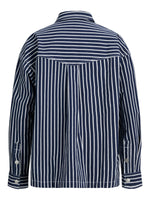 Vores LULA denim jakke, mørkeblå er med hvide striber og i det lækreste slidstærke materiale. LULA denim jakke, mørkeblå er designet med en skjortekrave, lange ærmer og en tre lommer foran. Jakken kan bådes bruges som en skjorte eller jakke.