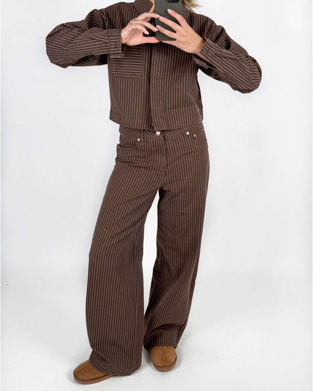 MADDY bukser, brun/lyserød er de fedeste pinstripe bukser, designet i et slidstærkt materiale.