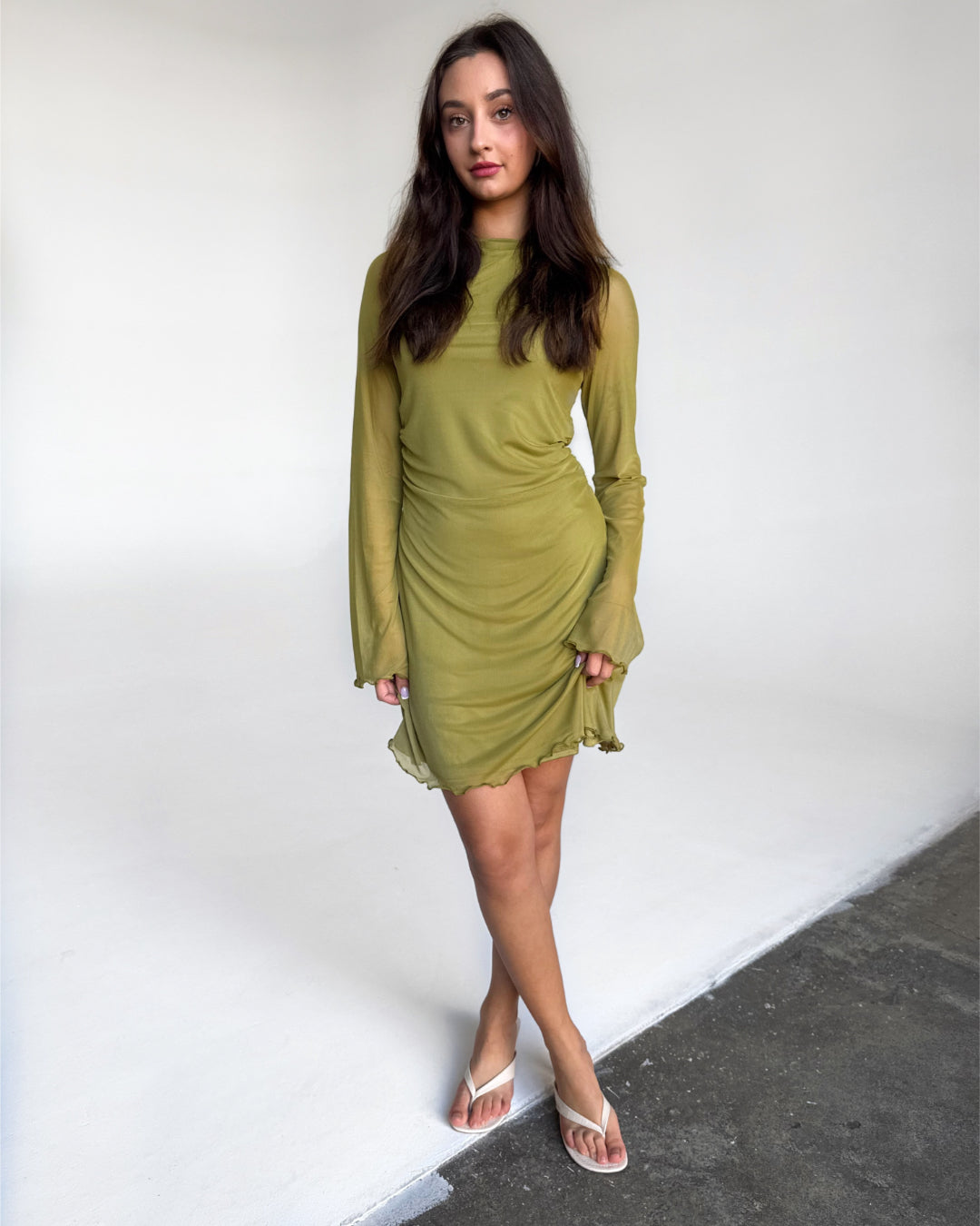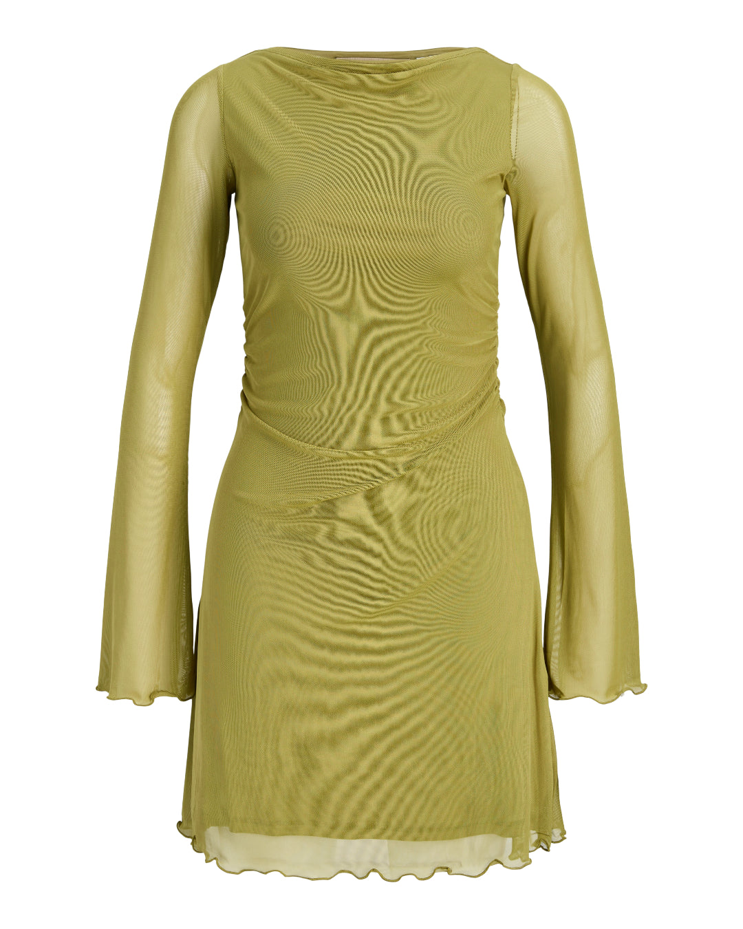 Den smukke MINNA kjole, grøn er den fineste basic mesh kjole med lange ærmer.