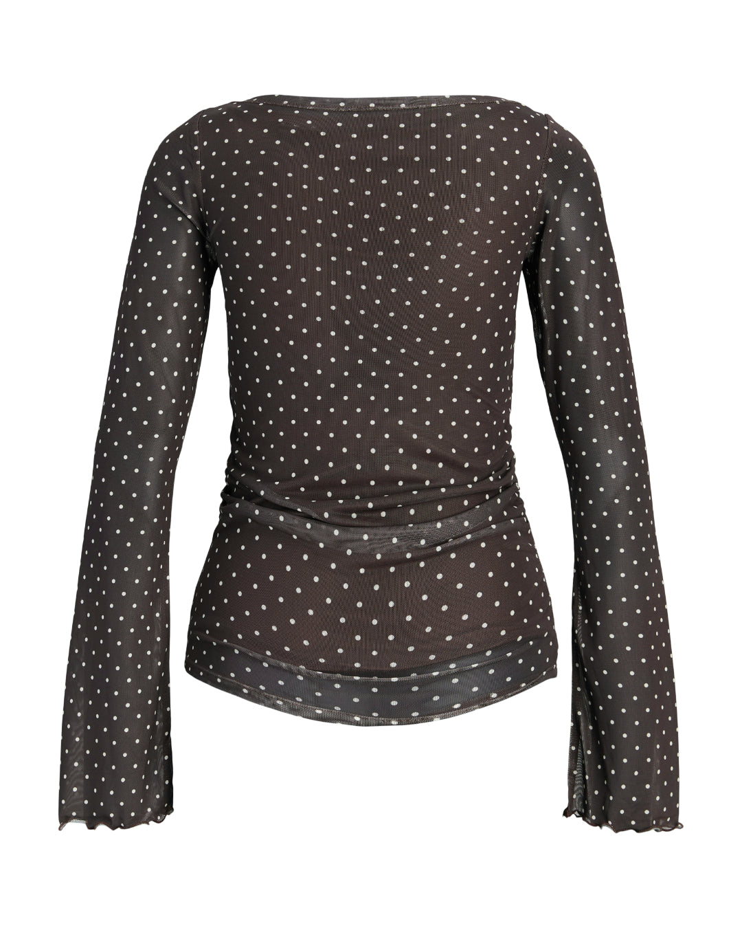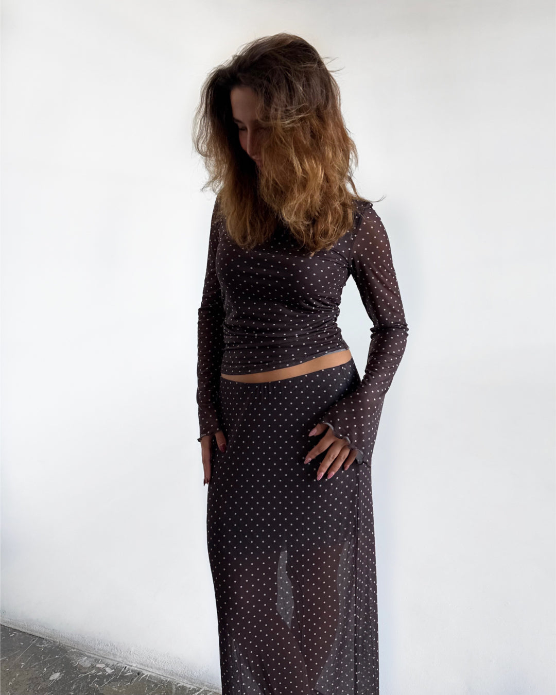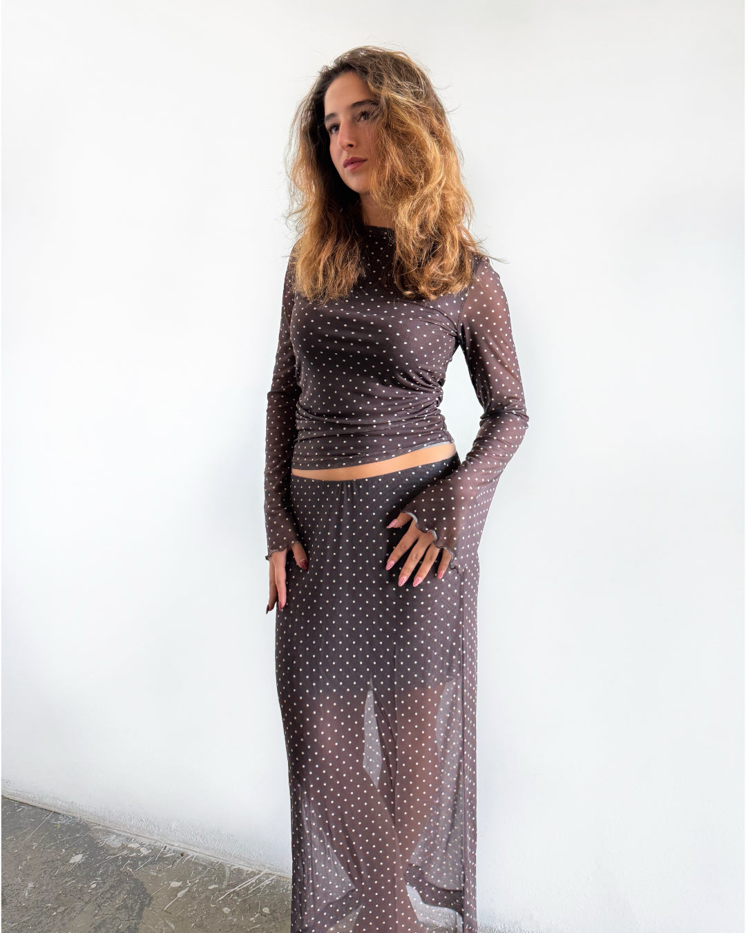 Vores MINNA mesh bluse, brun er den smukkeste bluse, i det fineste mesh materiale. Blusen har et slim fit, lange ærmer også er blusen ikke gennemsigtig. MINNA mesh bluse, brun er så enkelt og fin, at den kan styles med alt fra din garderobe. Til blusen findes der også en matchende underdel.