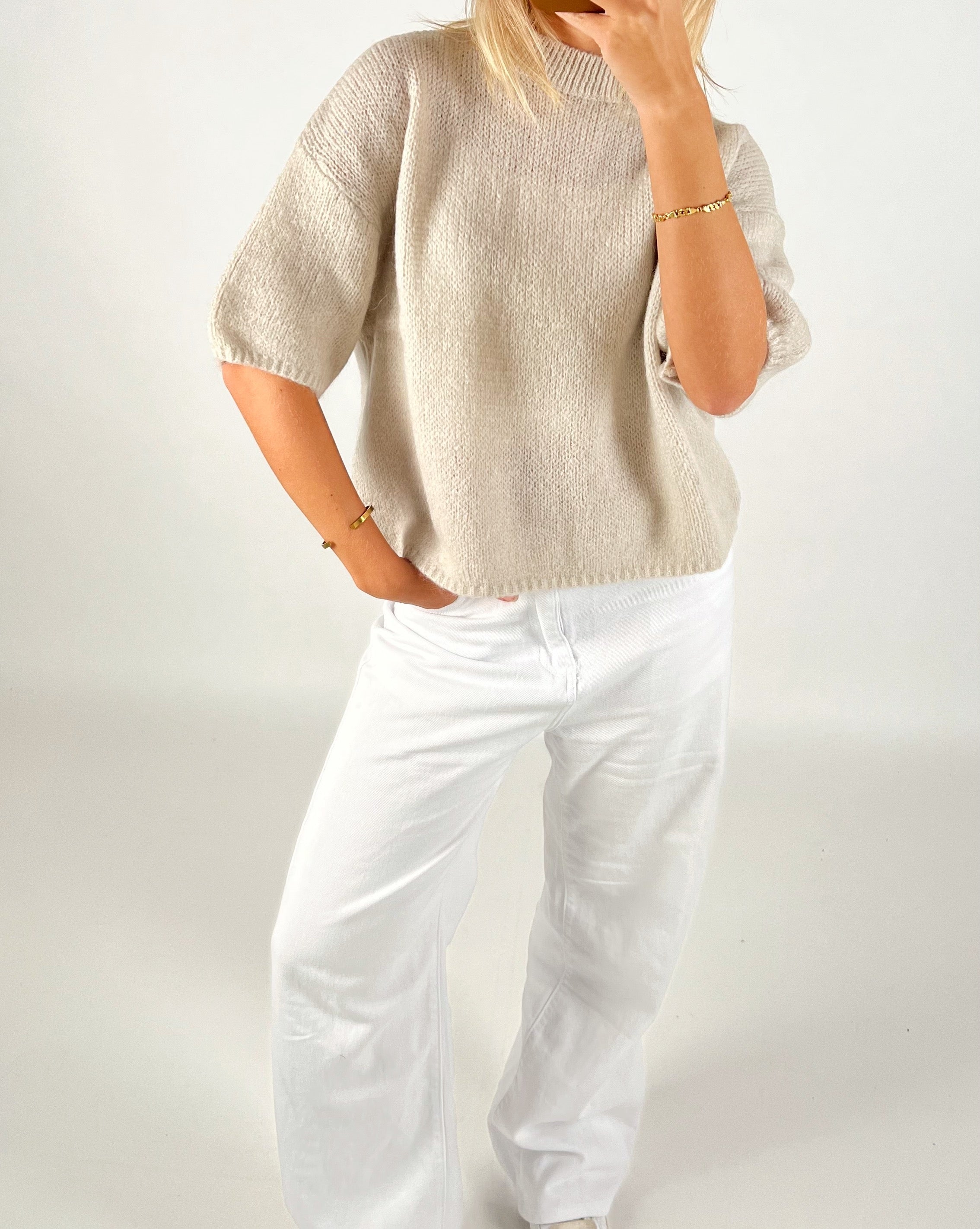 Den smukkePOPPY strik, beige er en smuk strikket t-shirt. T-shirten er i et strikket materiale og passer perfekt i en hver garderobe.
