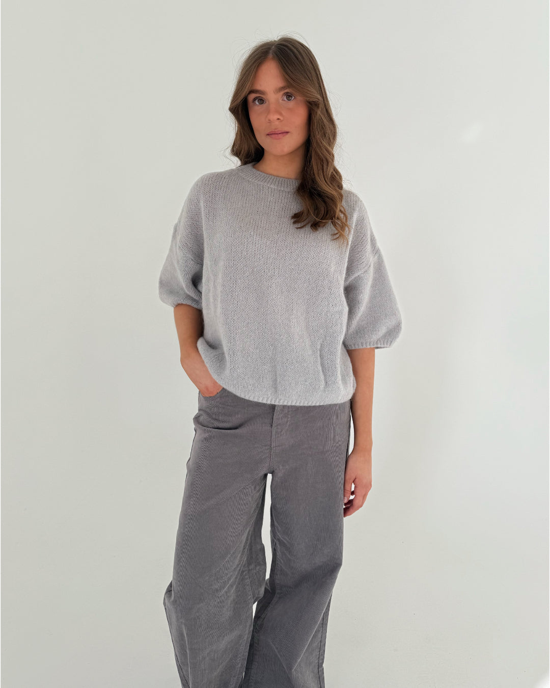 Den smukke POPPY strik, lysegrå er en smuk strikket t-shirt. T-shirten er i et strikket materiale og passer perfekt i en hver garderobe.