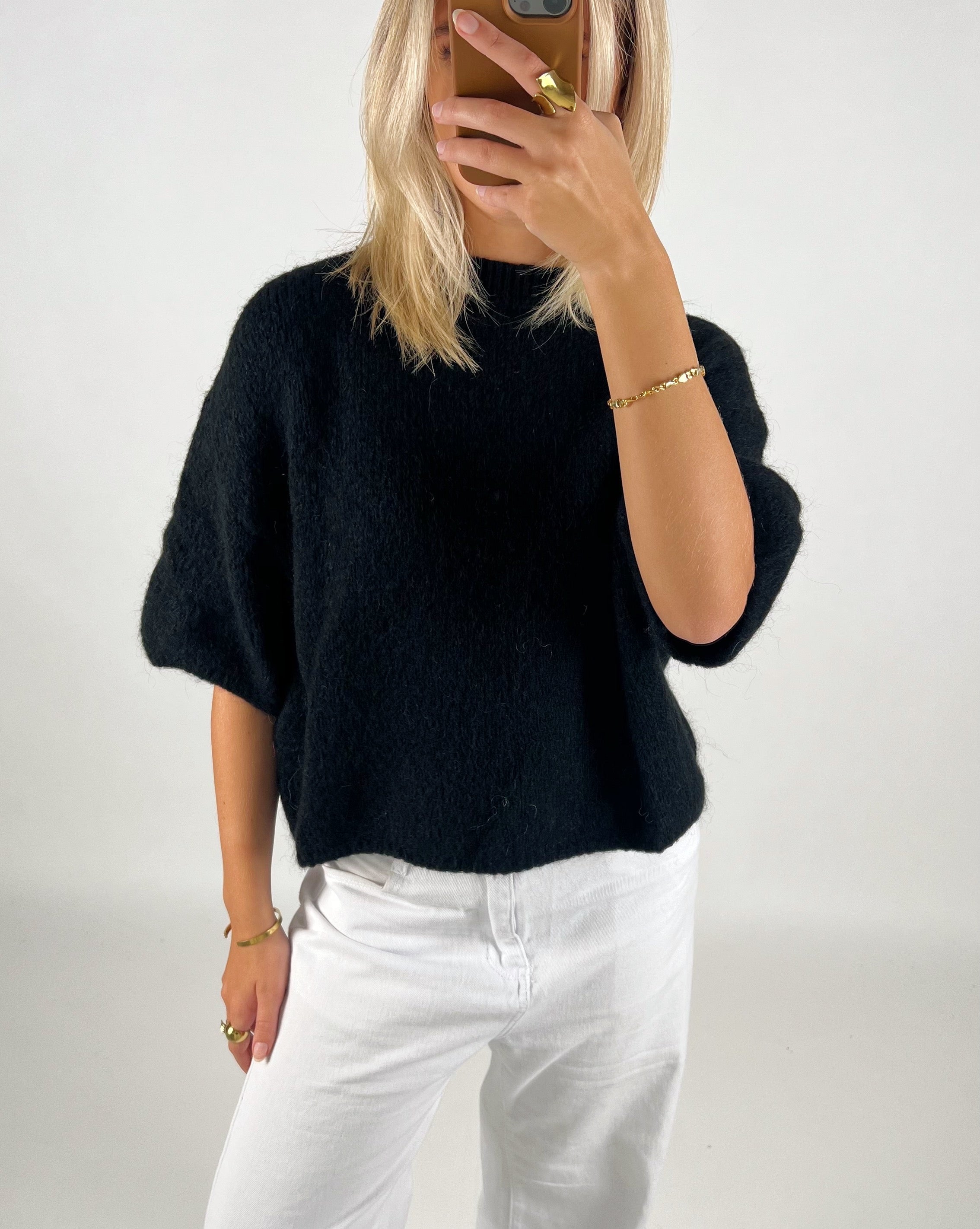 Den smukke POPPY strik, sort er en smuk strikket t-shirt. T-shirten er i et strikket materiale og passer perfekt i en hver garderobe.