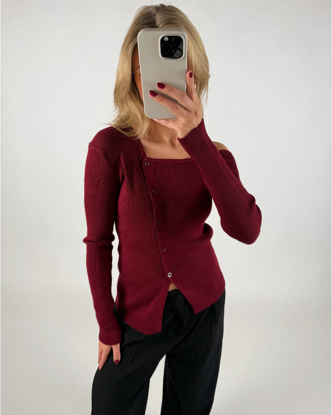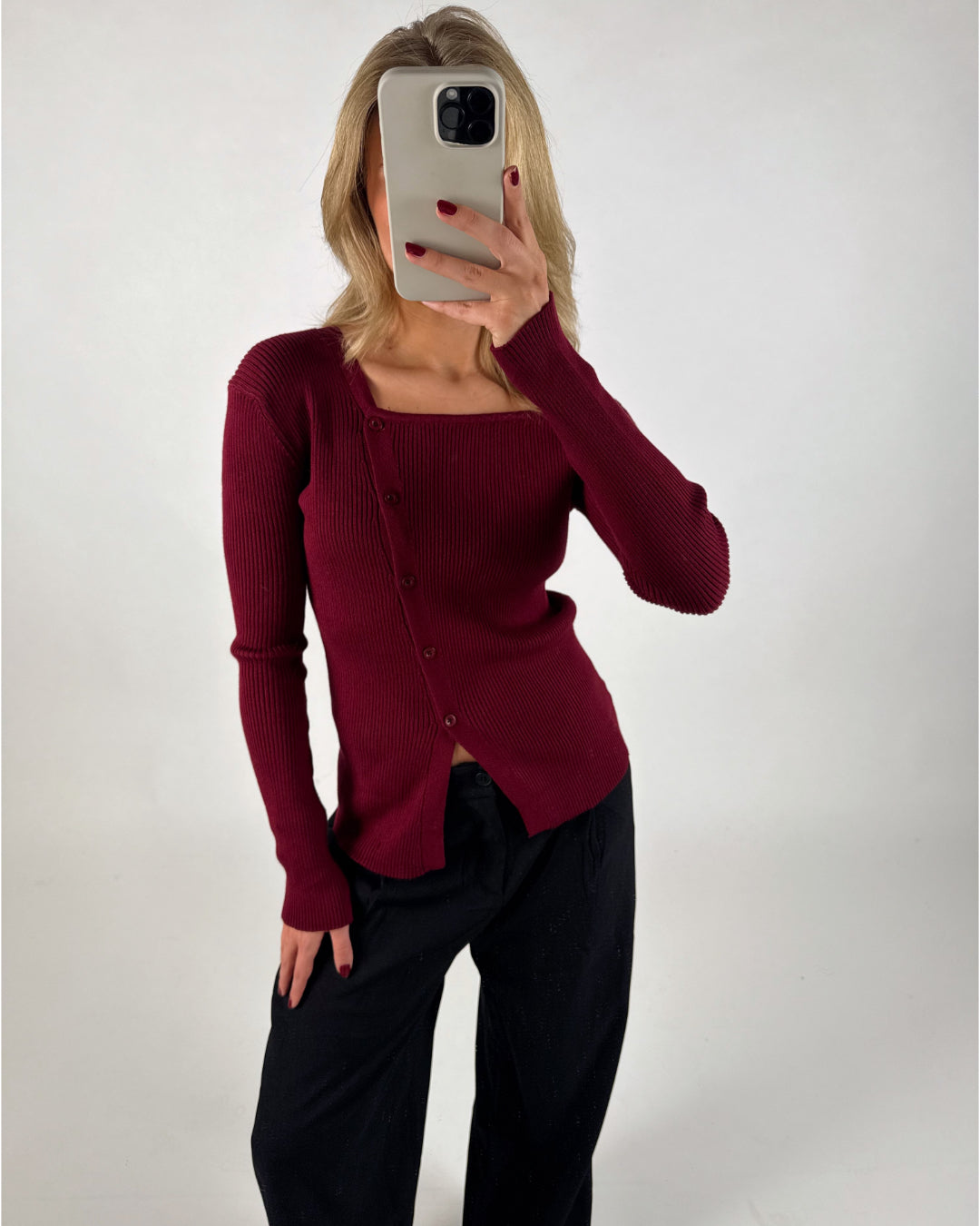 Vores REMY bluse, bordeaux er en smuk langærmet bluse i et tynd strikket materiale.