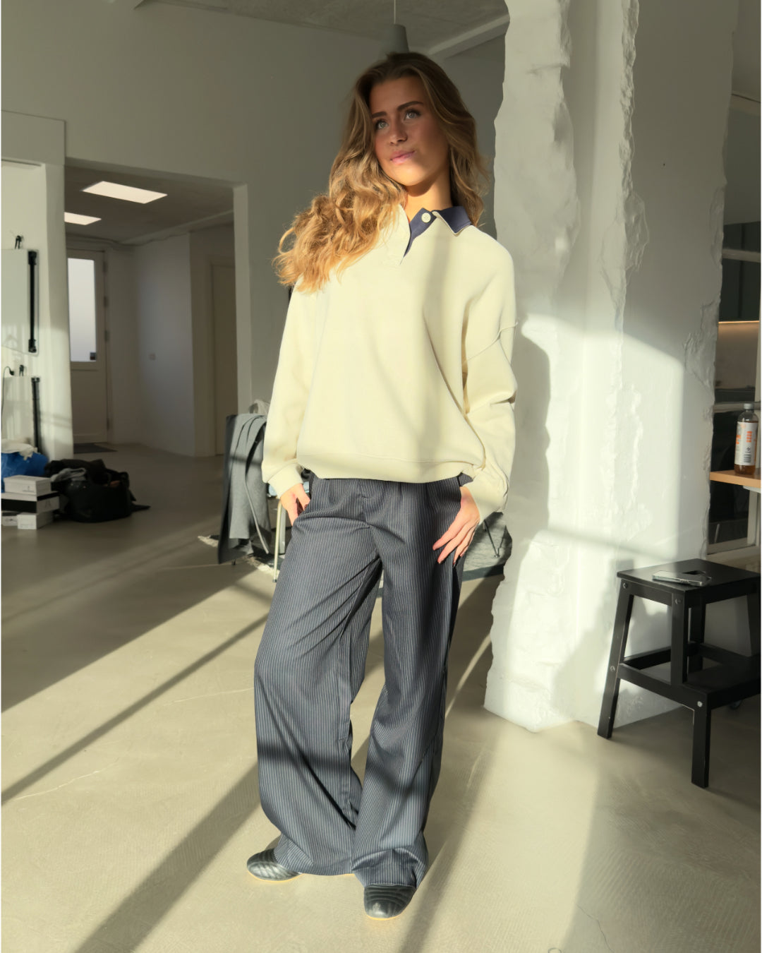 RILEY polo, beige er den fedeste polo sweatshirt. RILEY polo, beige har en oversize pasform, krave og knapper. Poloen er designet i et blødt materiale, og passer perfekt til mange forskellige begivenheder.