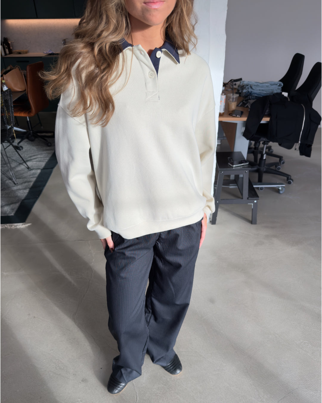 – Sweatshirt med krave.
