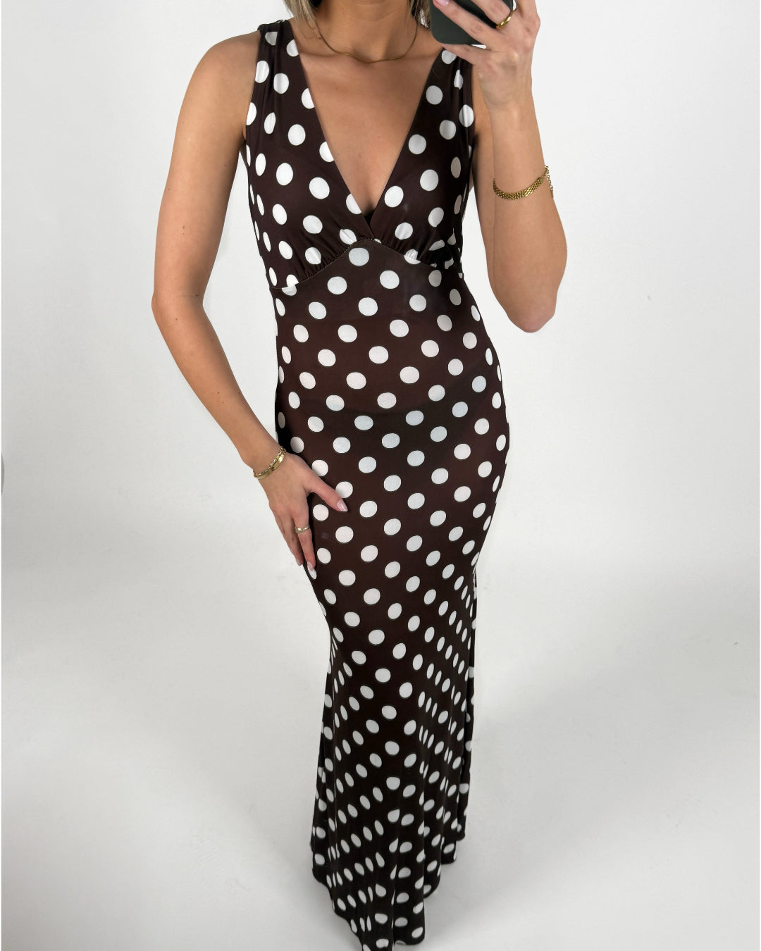 Vores SAWYER kjole, brun er en lang flot prikket kjole, med smukke detaljer.