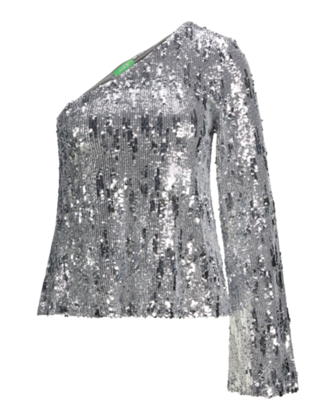 TARA one shoulder bluse, sølv er et musthave til de kommende højtider, og er perfekt som nytårsbluse.