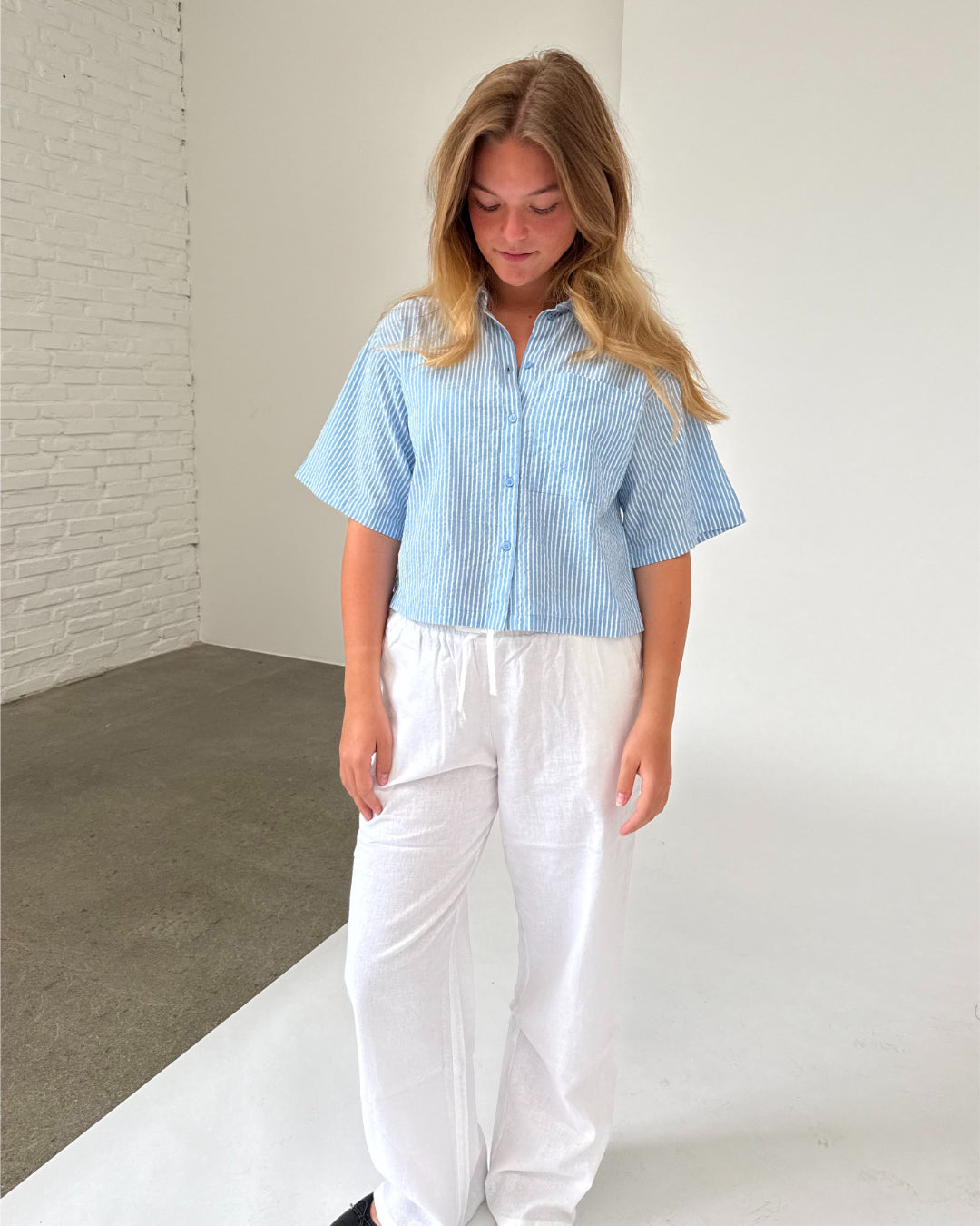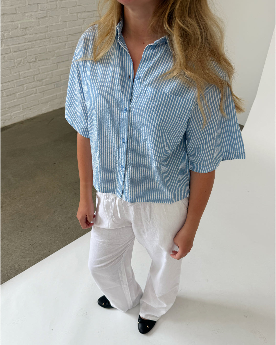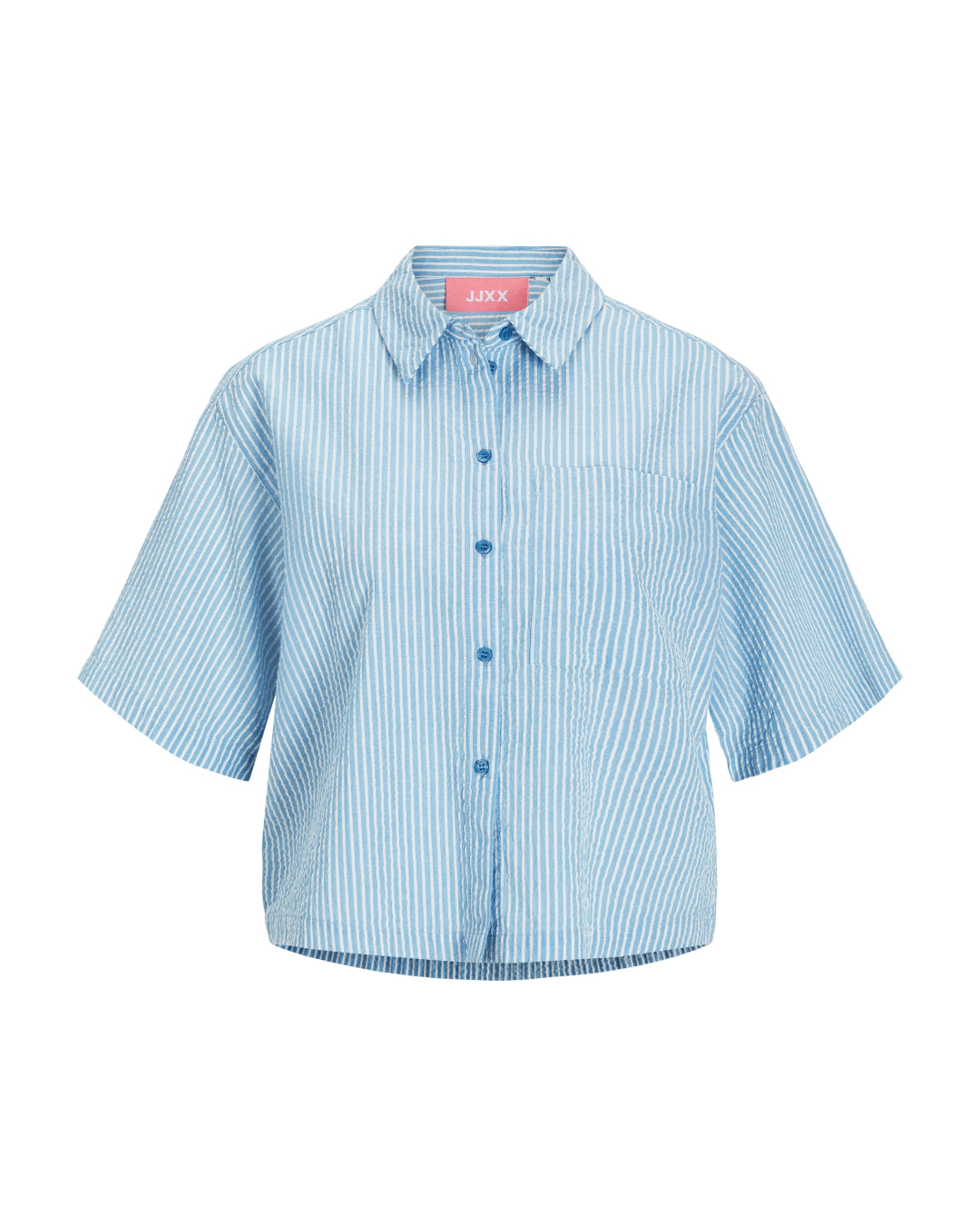 Vores WINDY skjorte, blå er den perfekte kortærmede skjorte. Skjorten er løs og let, og så har den et perfekt, cool fit.