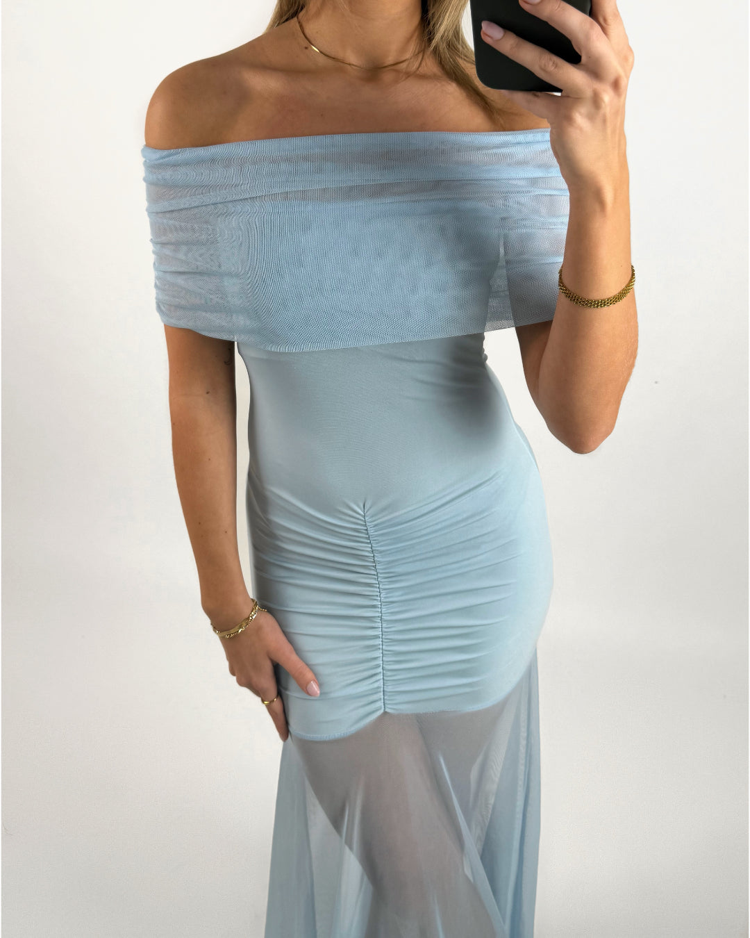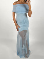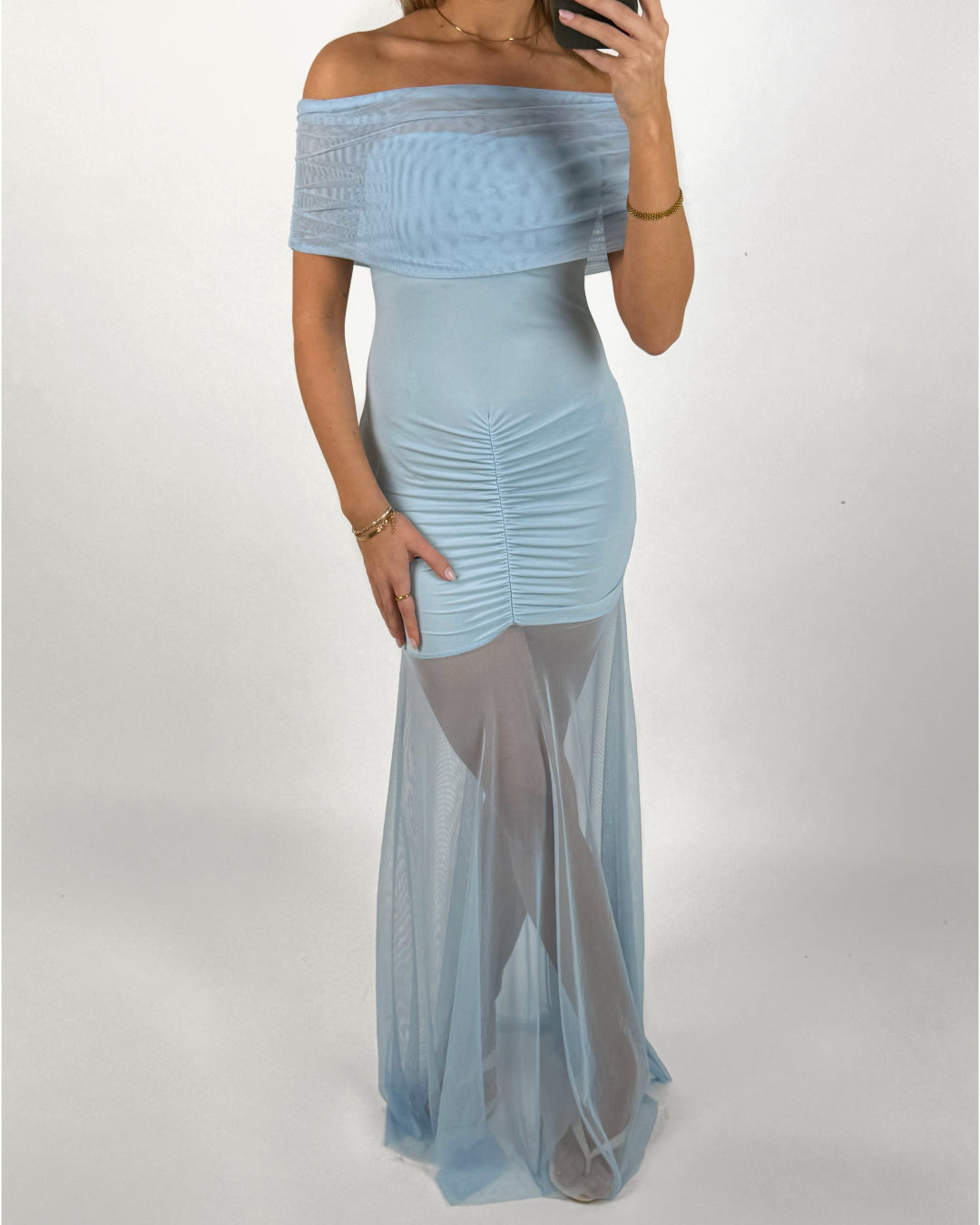 Vår AIMEE klänning, ljusblå är en vacker maxiklänning, i en otroligt feminin look.